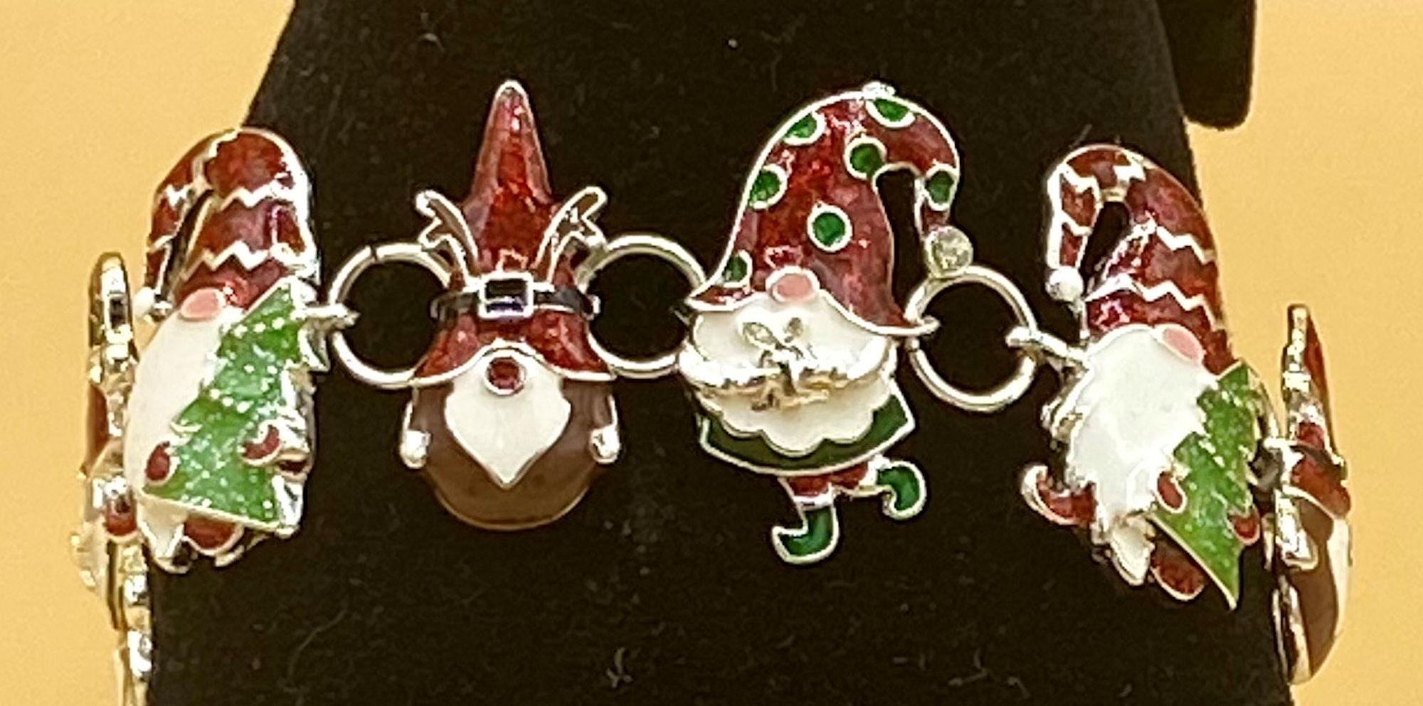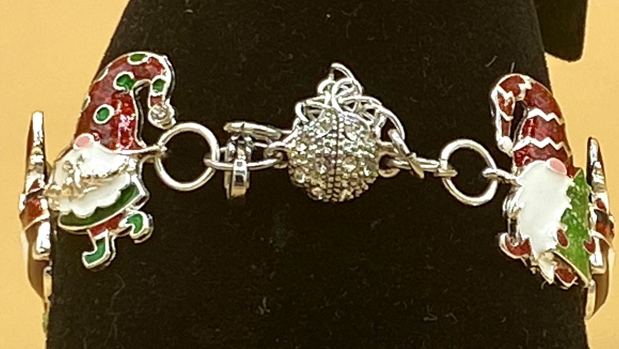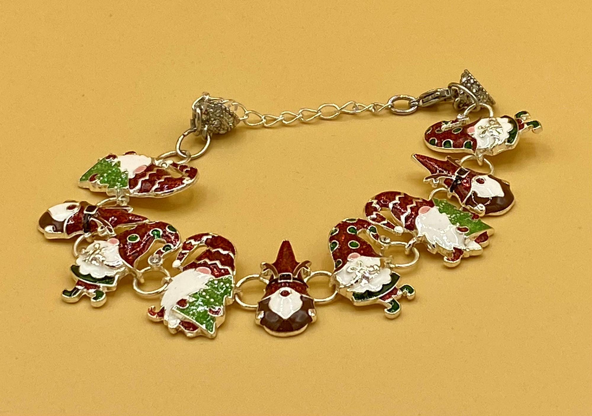 This is a perfect Christmas bracelet with an easy to use magnetic clasp. Safety chain helps to prevent loss. Colorful enamel makes this bracelet stand out. This is for the gnome lover on your Christmas list. Each piece is gift boxed. Please do not hesitate to contact me with any questions, I would love to hear from you!