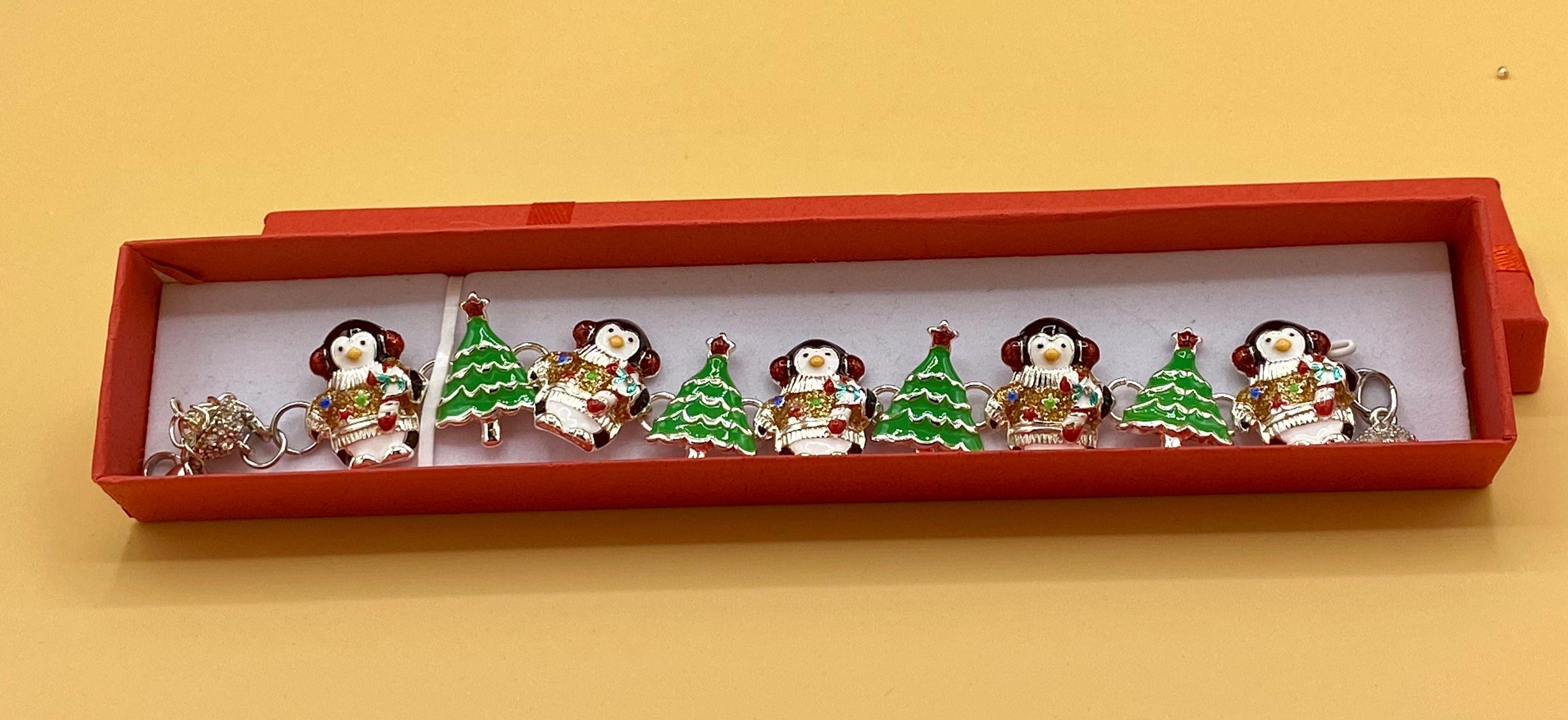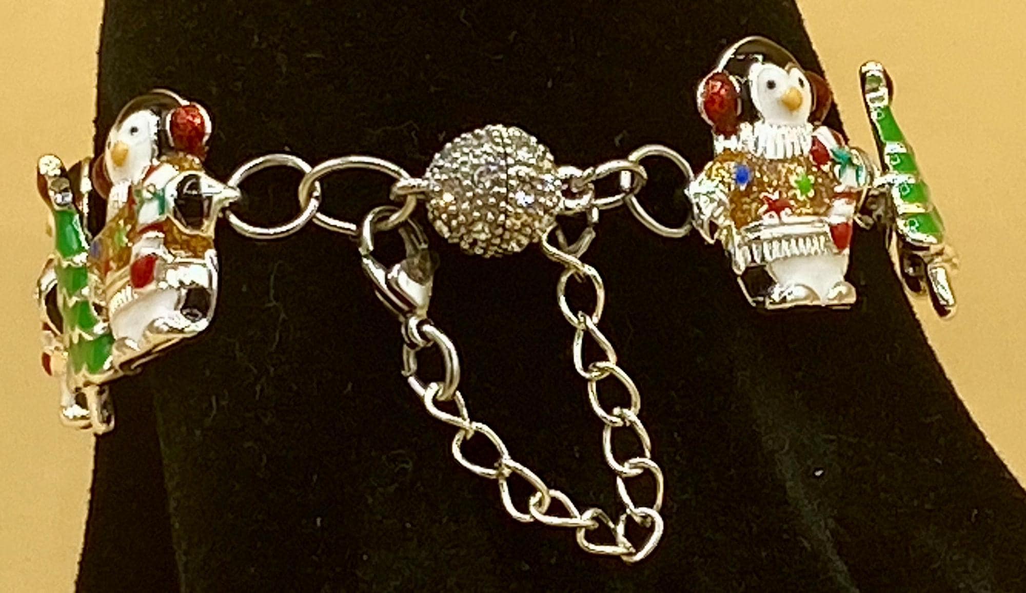 This is a perfect Christmas bracelet with an easy to use magnetic clasp. Safety chain helps to prevent loss. Colorful enamel makes this bracelet stand out. This is for the Penguin lover on your Christmas list. Each piece is gift boxed. Please do not hesitate to contact me with any questions, I would love to hear from you!