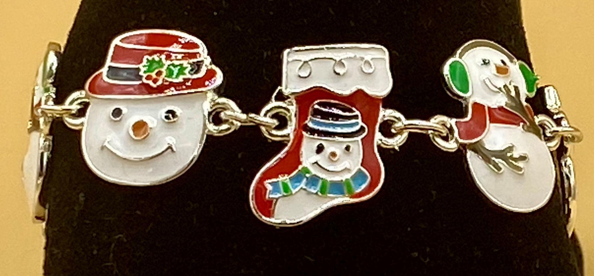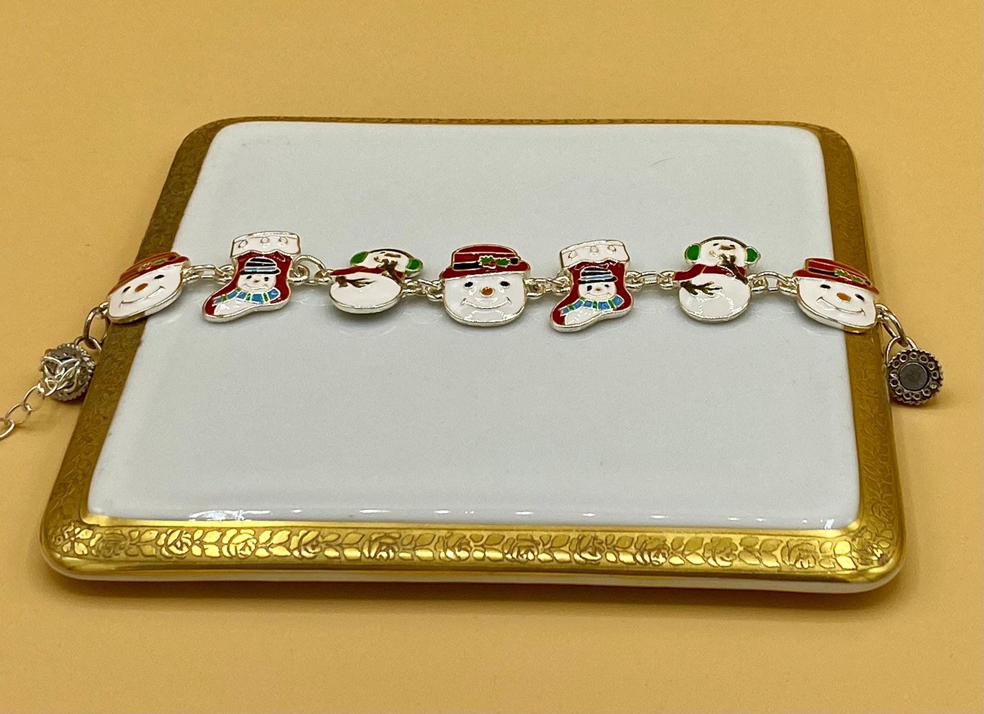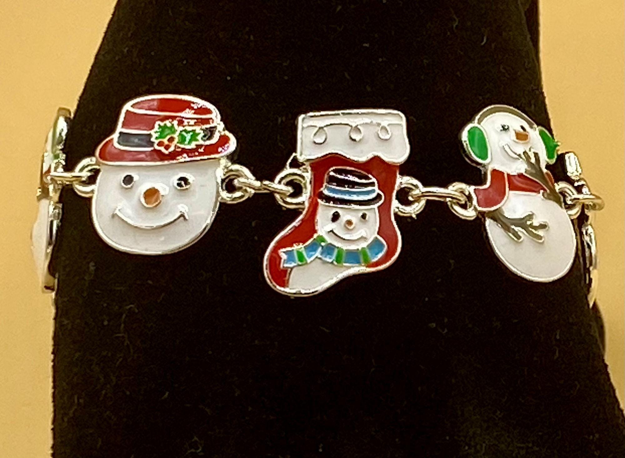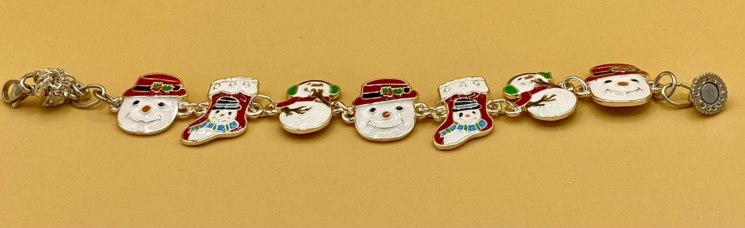 This is a perfect Christmas bracelet with an easy to use magnetic clasp. Safety chain helps to prevent loss. Colorful enamel makes this bracelet stand out. This is for the Snowman lover on your Christmas list. Each piece is gift boxed. Please do not hesitate to contact me with any questions, I would love to hear from you!