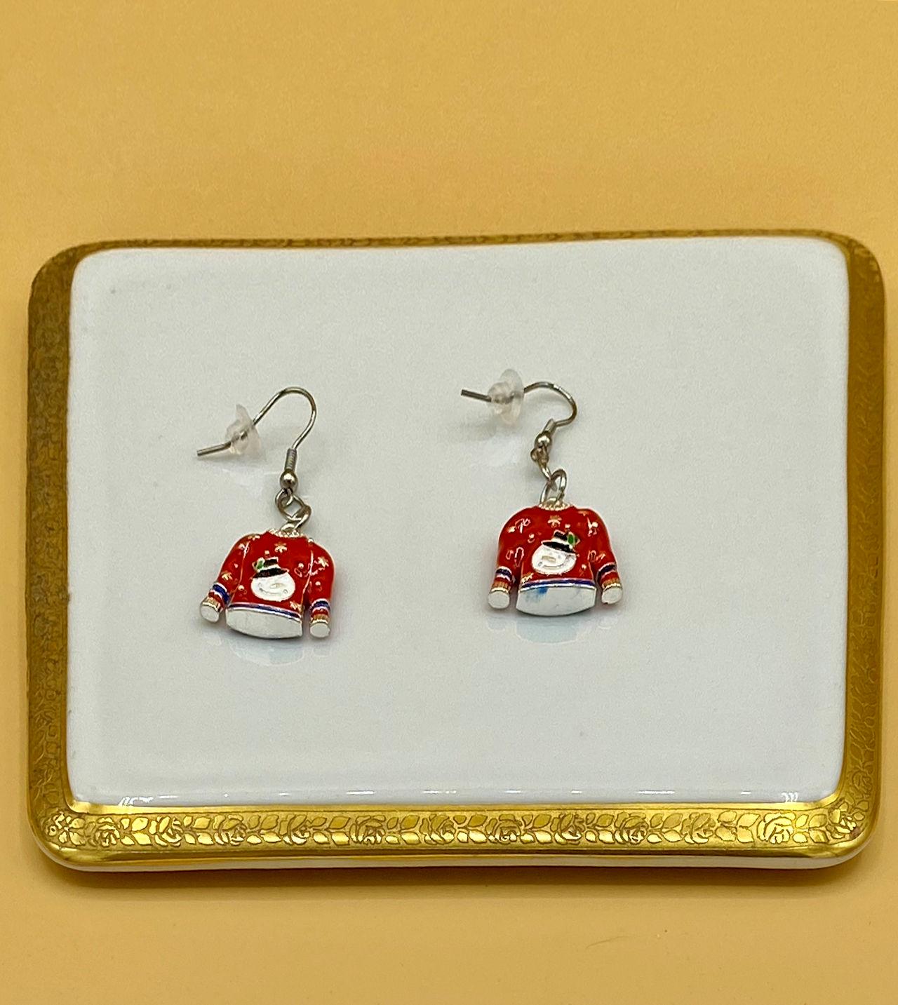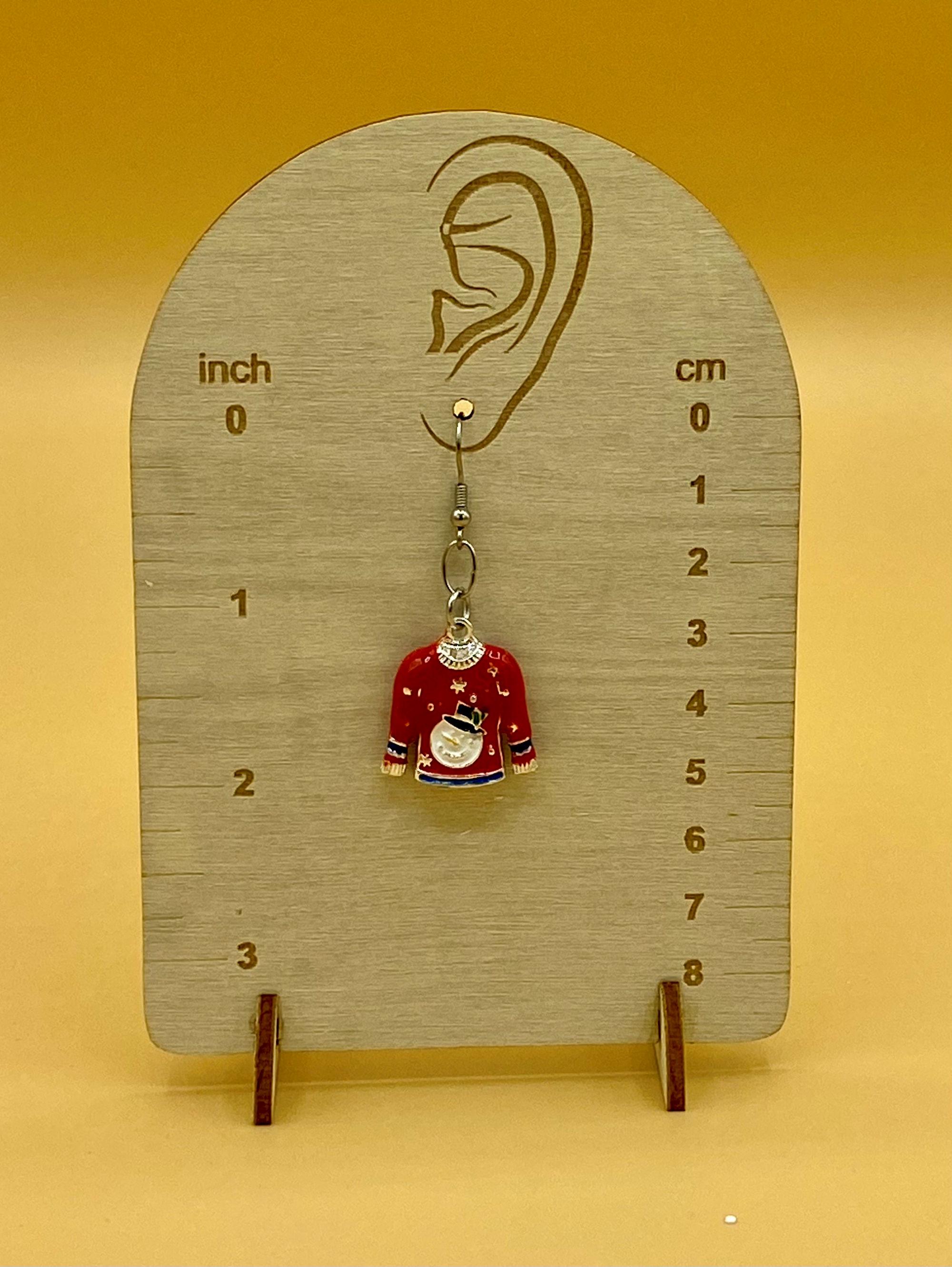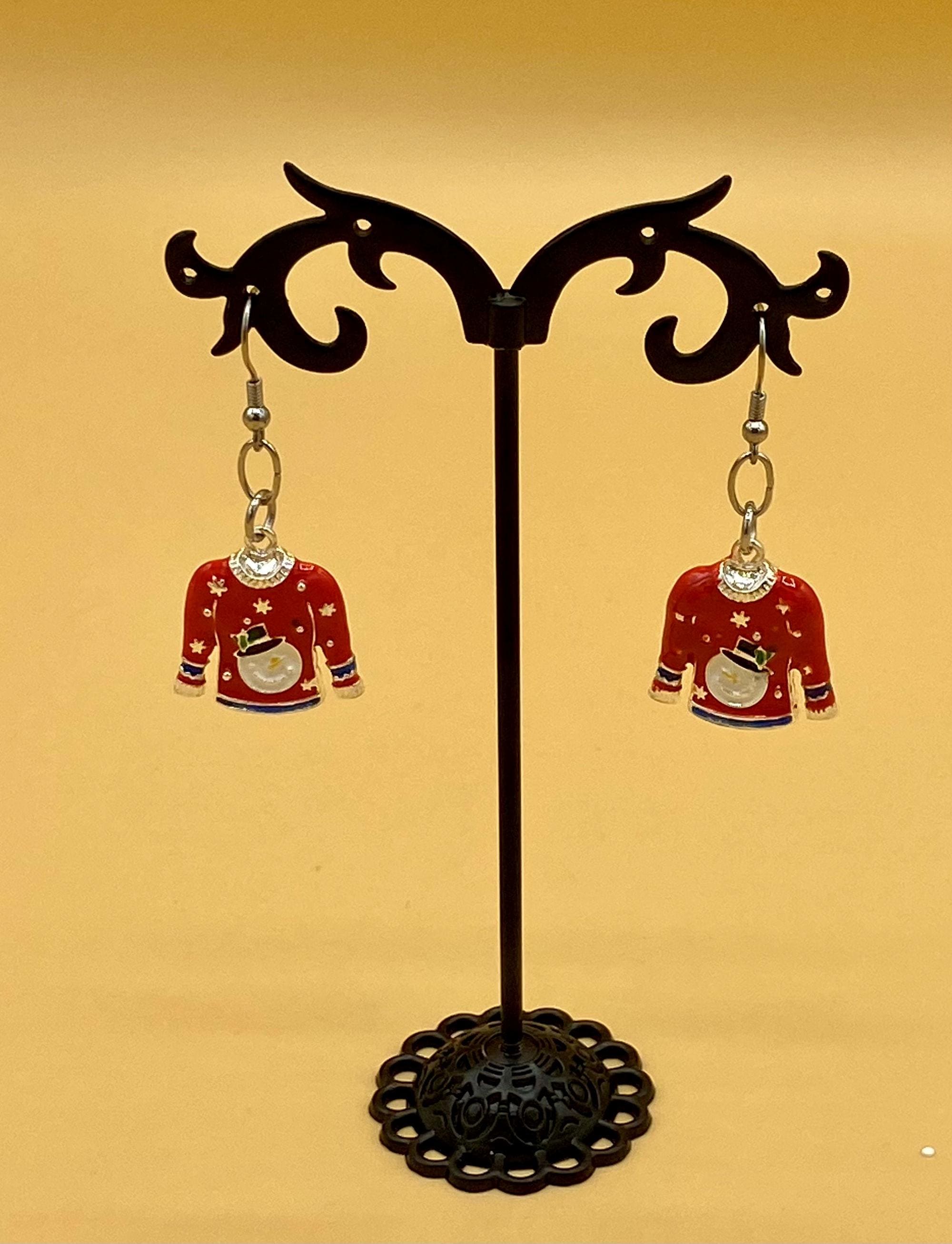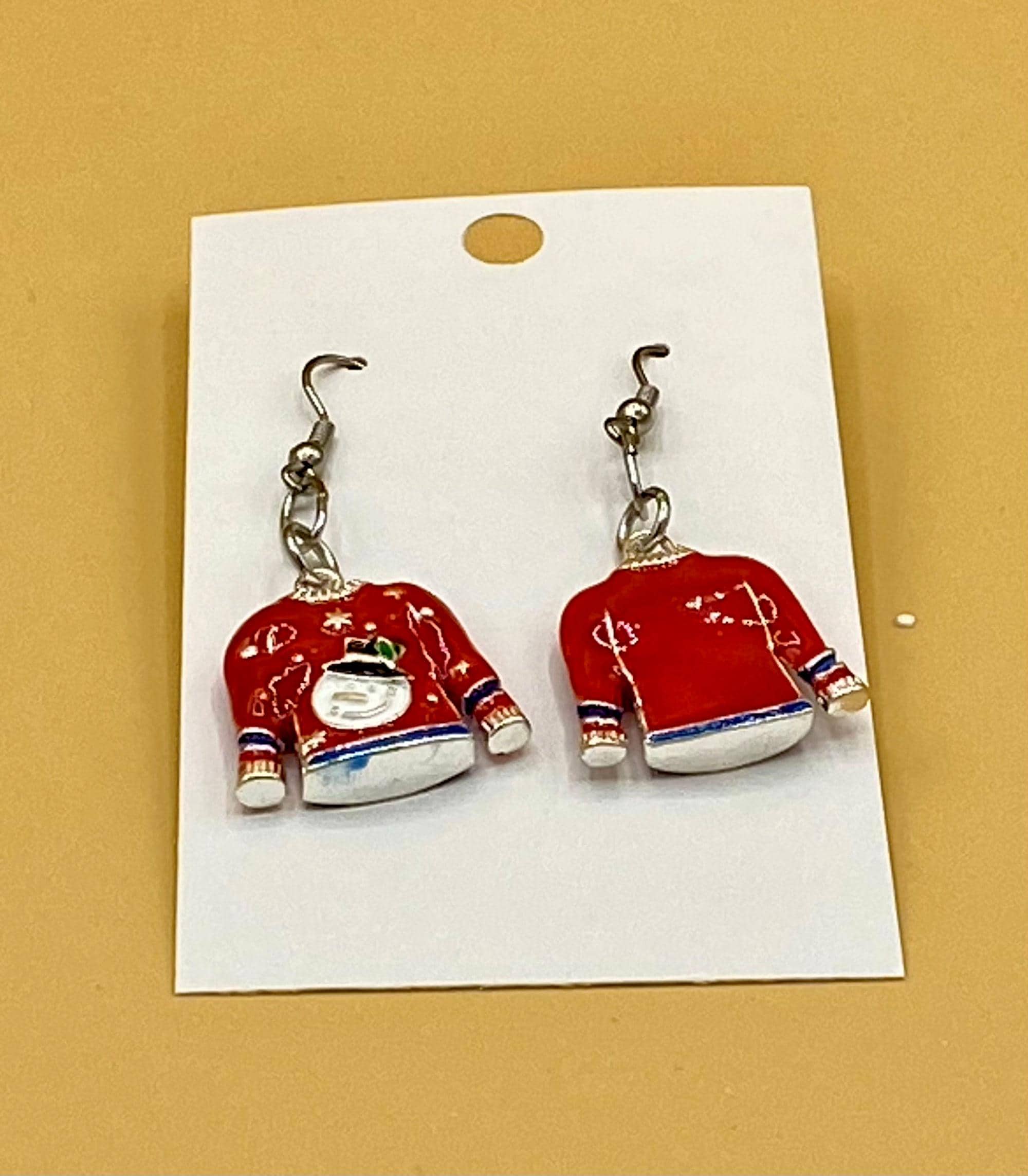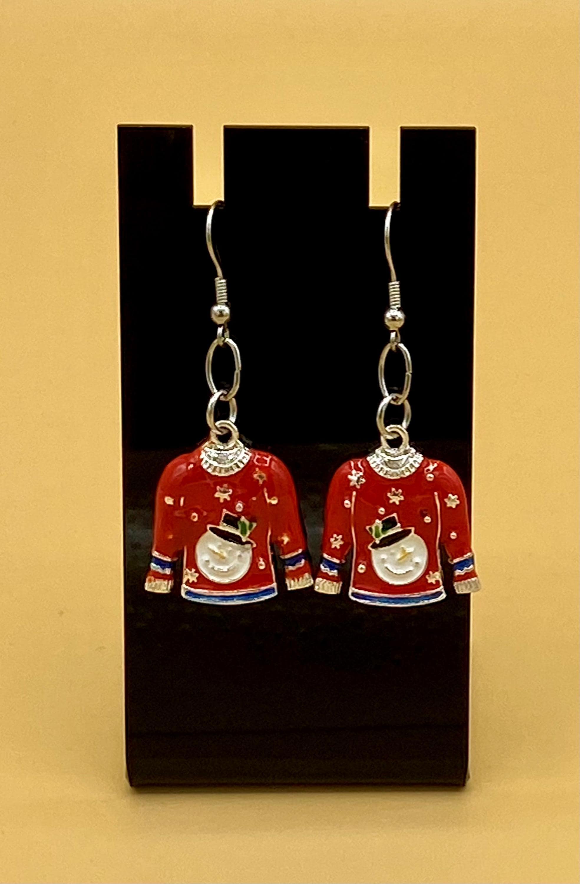Red Enamel Ugly Christmas Sweater Earrings Stainless Hook
