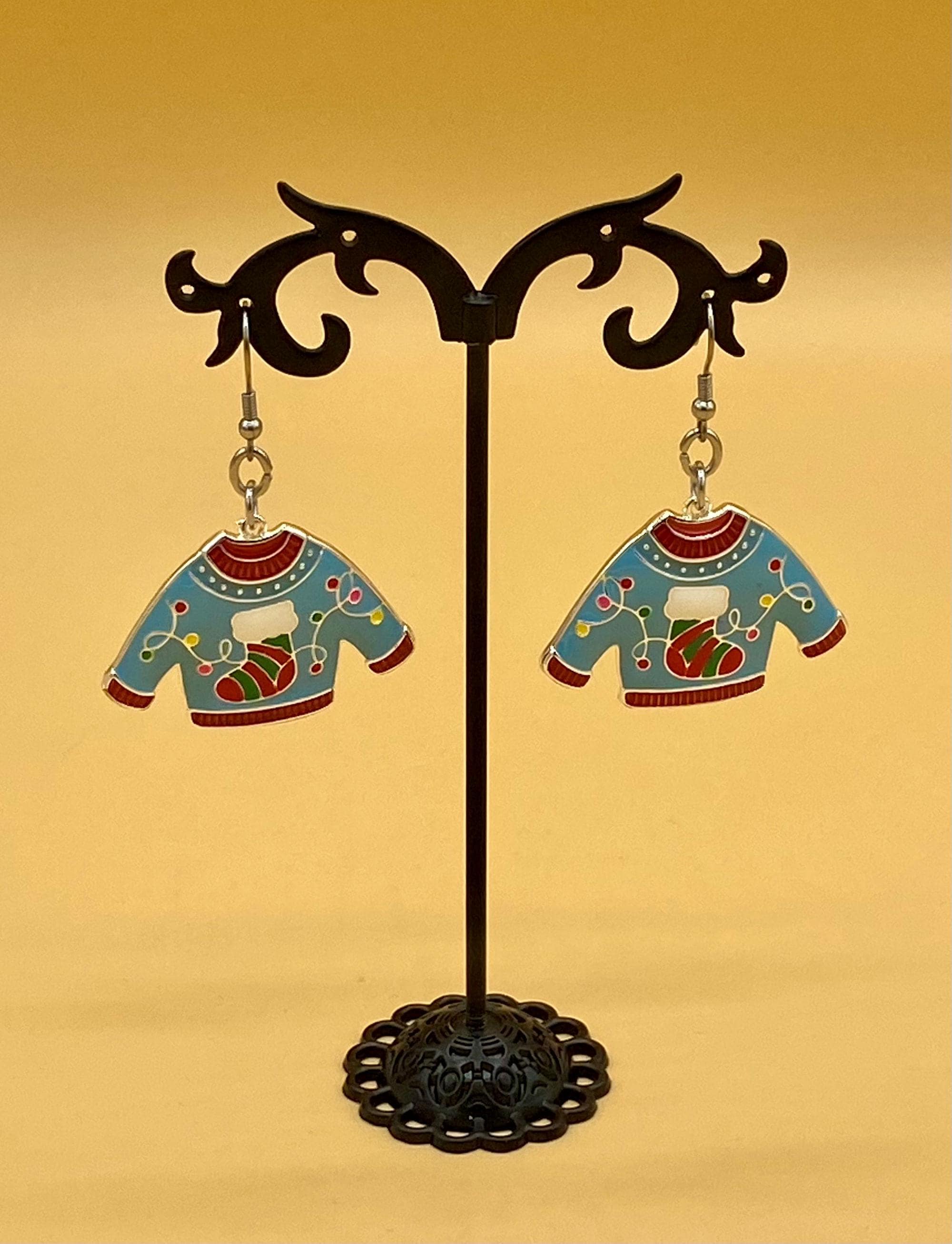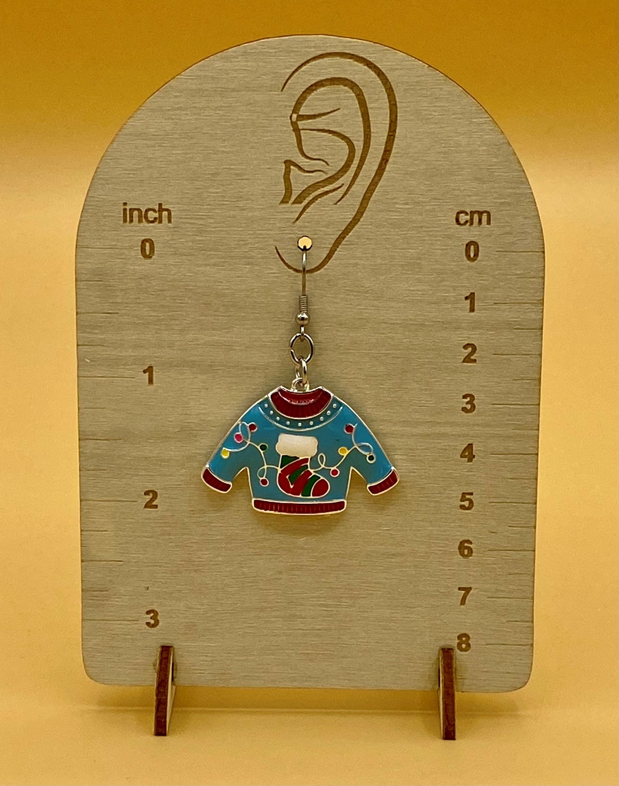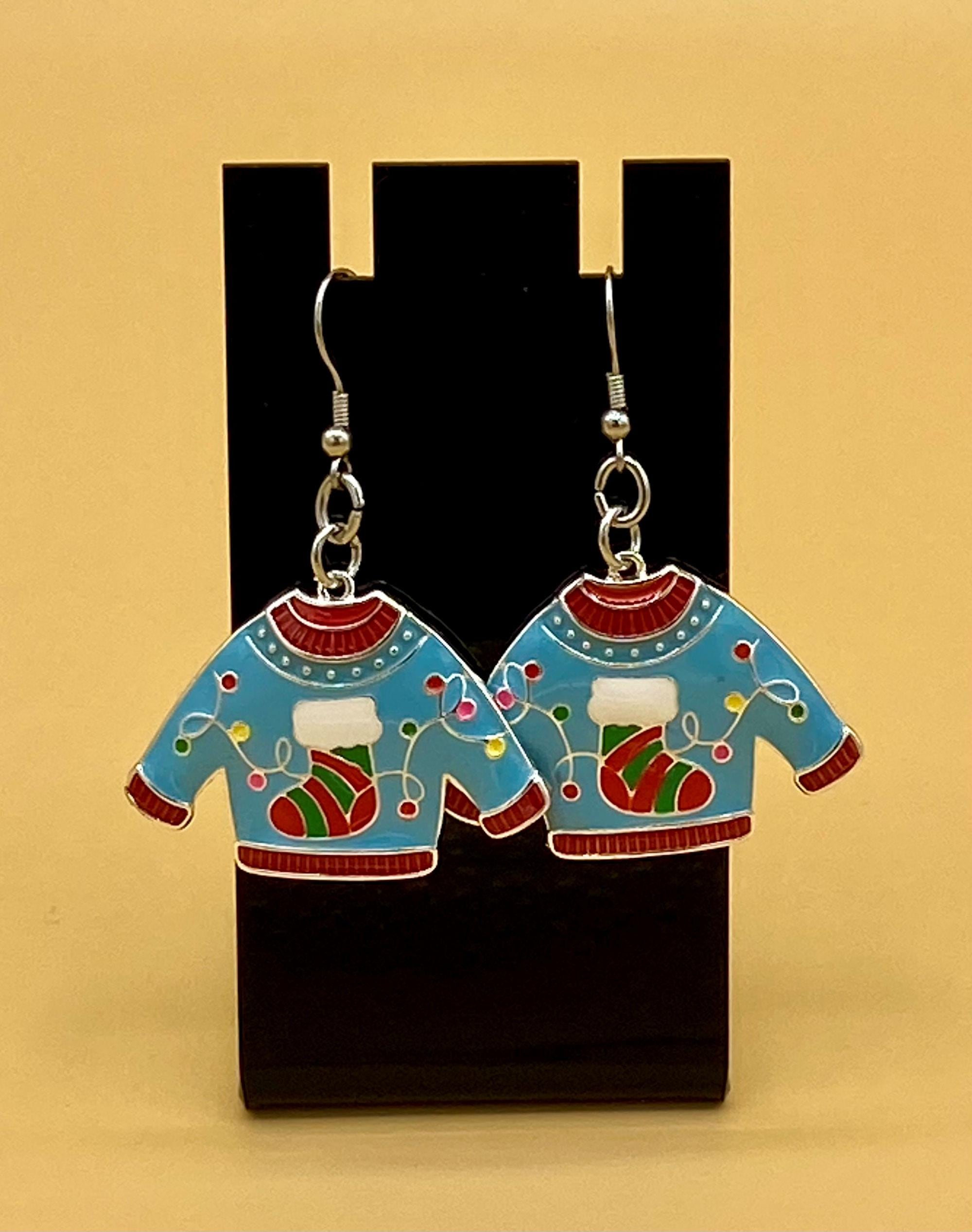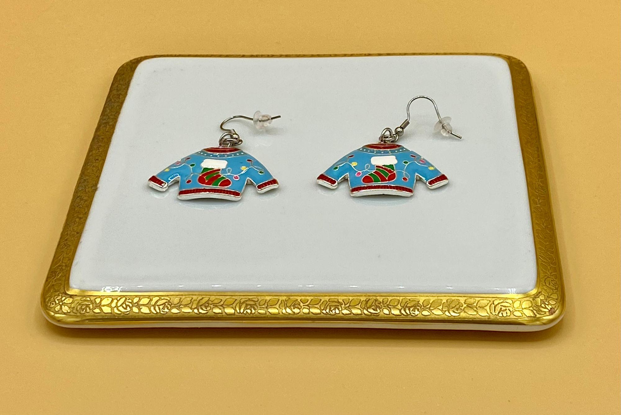 Blue Enamel Ugly Christmas Sweater Earrings Stainless Hook