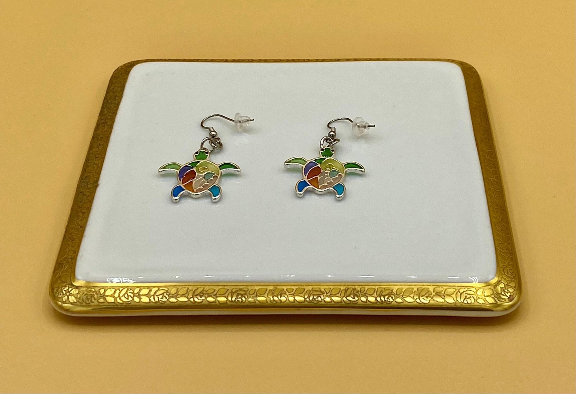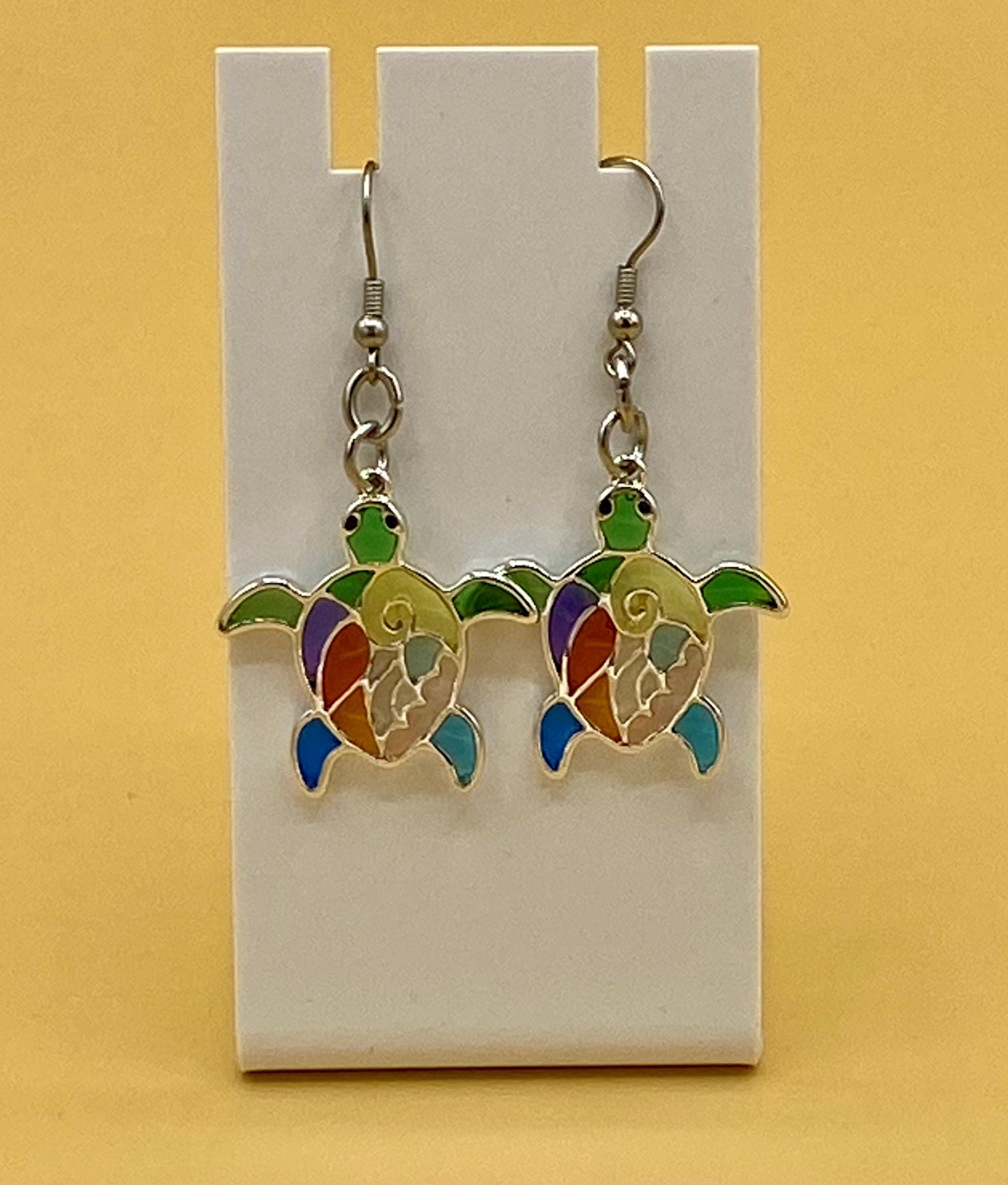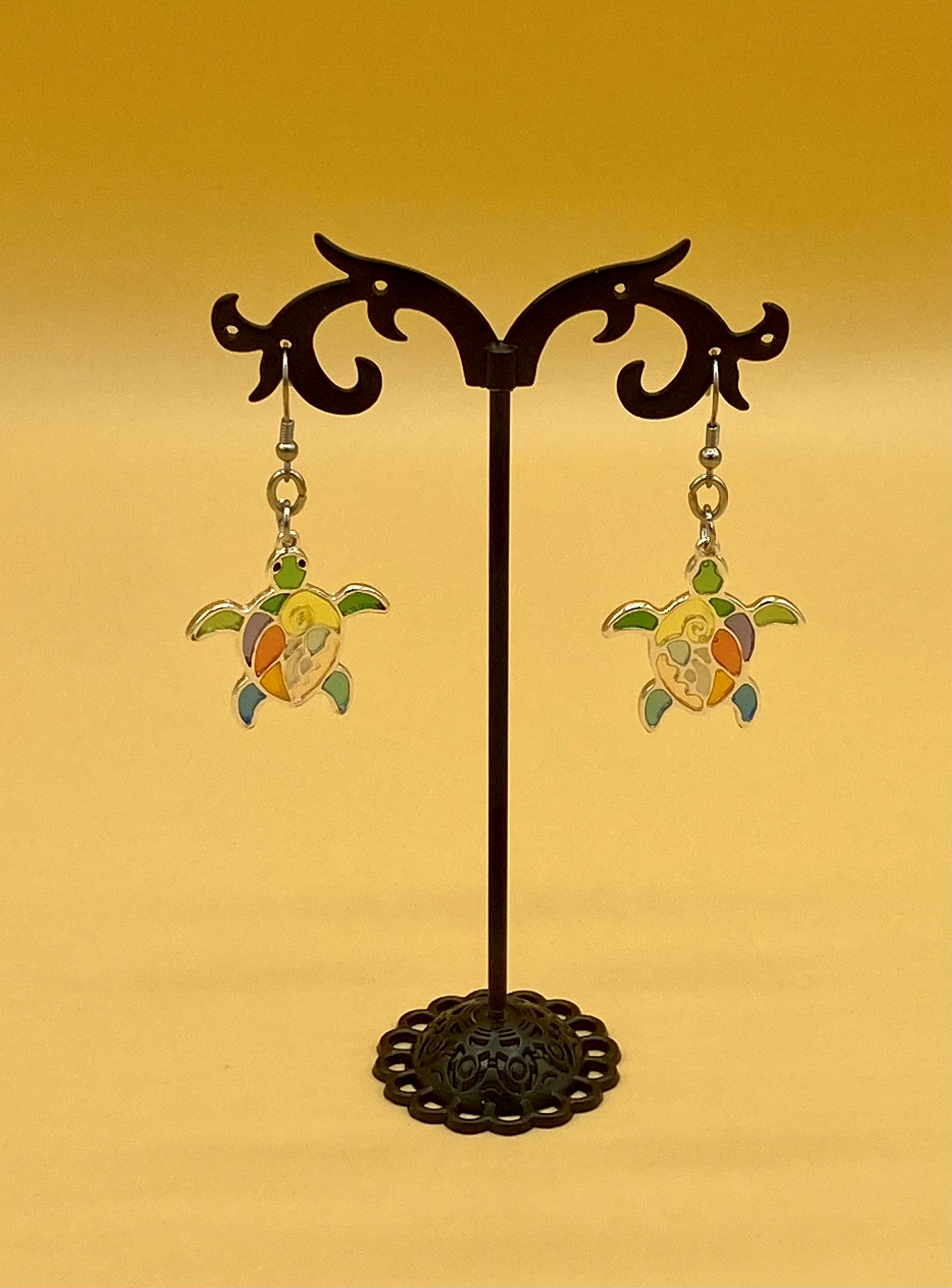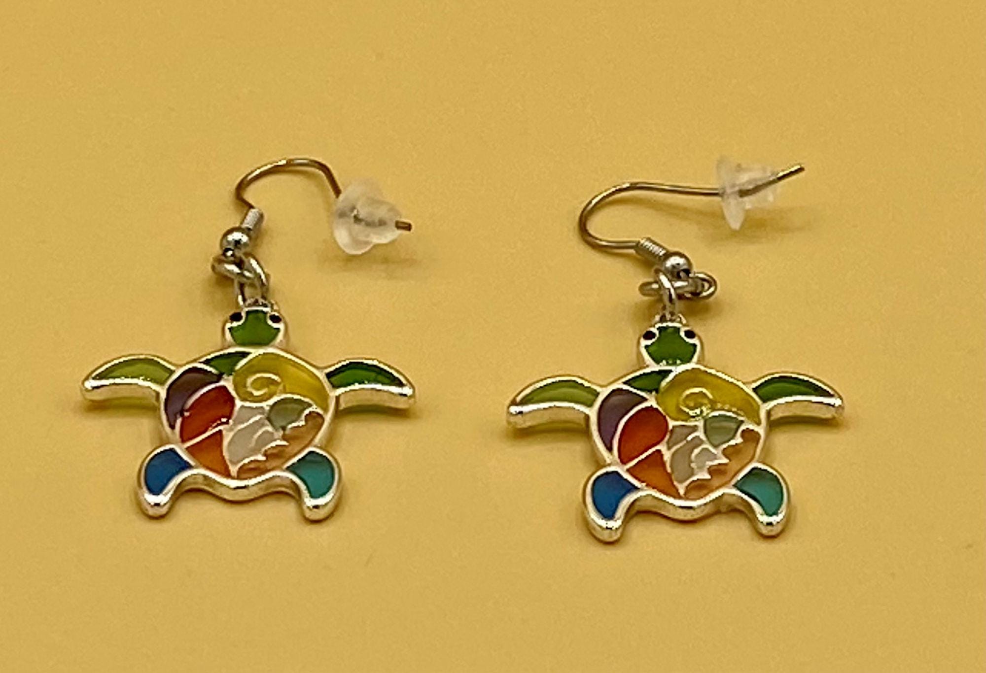 These are a perfect colorful earrings to make any occasion special. Hooks are stainless steel for those with sensitive ears. These earrings give the feeling of stain glass, but are acrylic for lighter weight. This is for the turtle lover on your gift list. Each piece is gift boxed. Please do not hesitate to contact me with any questions, I would love to hear from you!