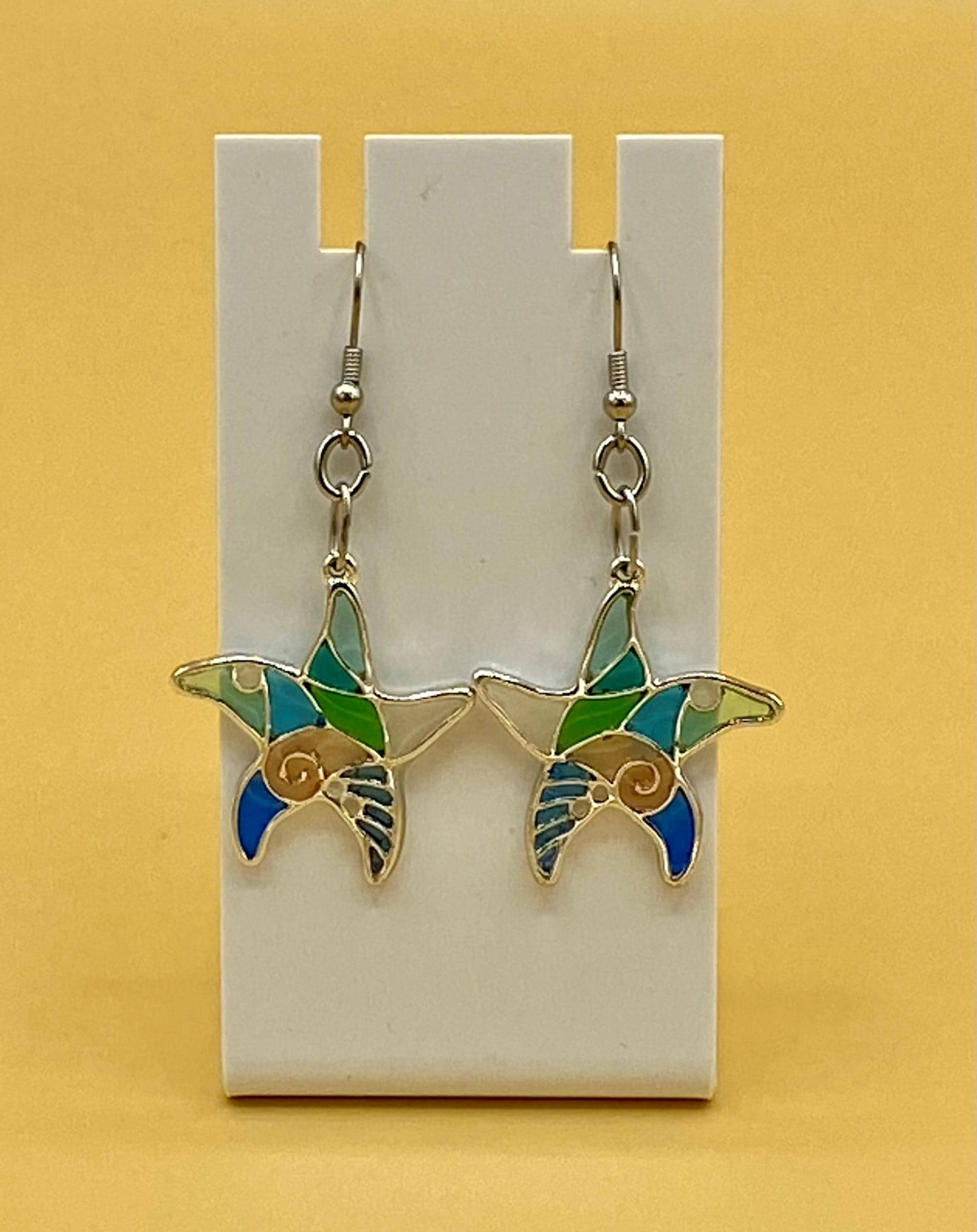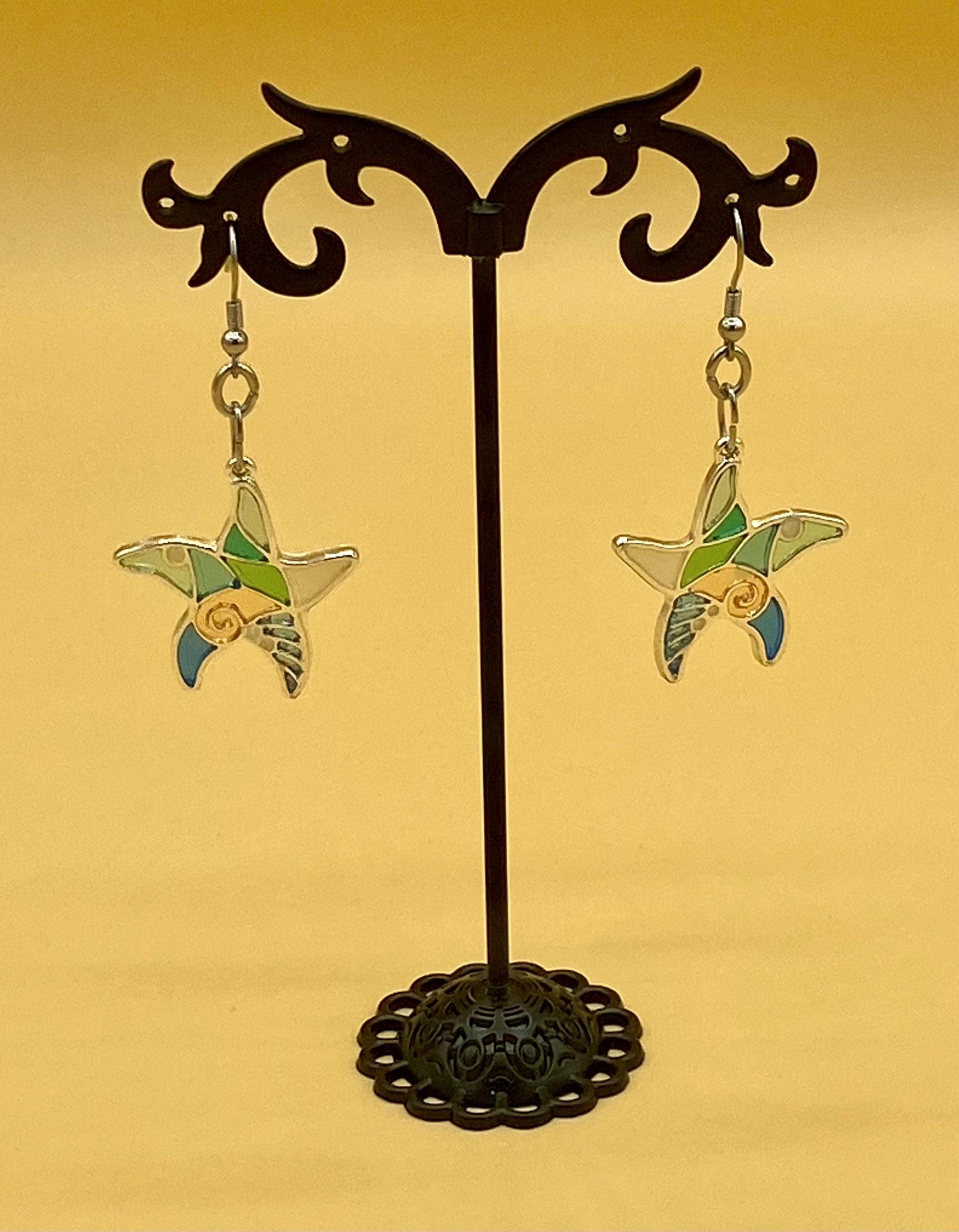 These are a perfect colorful earrings to make any occasion special. Hooks are stainless steel for those with sensitive ears. These earrings give the feeling of stain glass, but are acrylic for lighter weight. This is for the starfish lover on your gift list. Each piece is gift boxed. Please do not hesitate to contact me with any questions, I would love to hear from you!