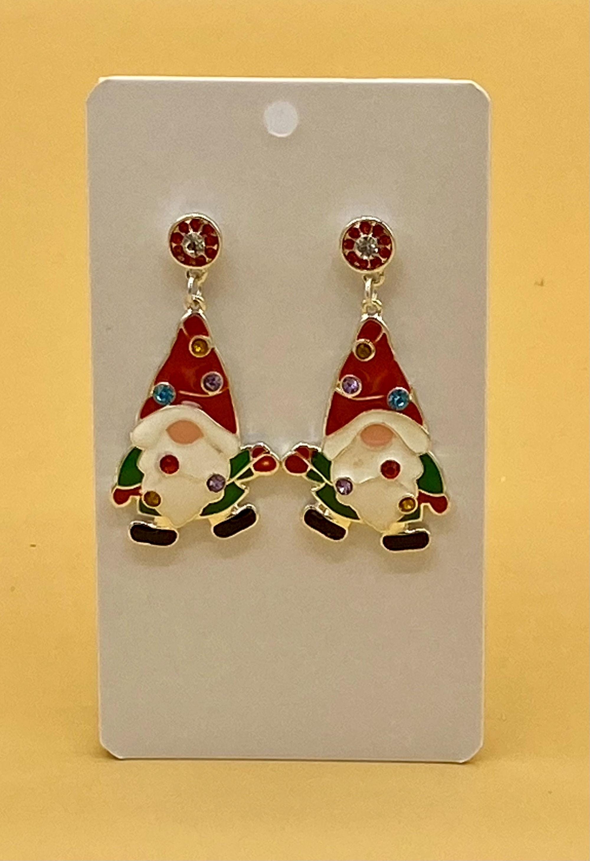 Enamel Christmas Gnome with Lights Earrings Stainless Hook