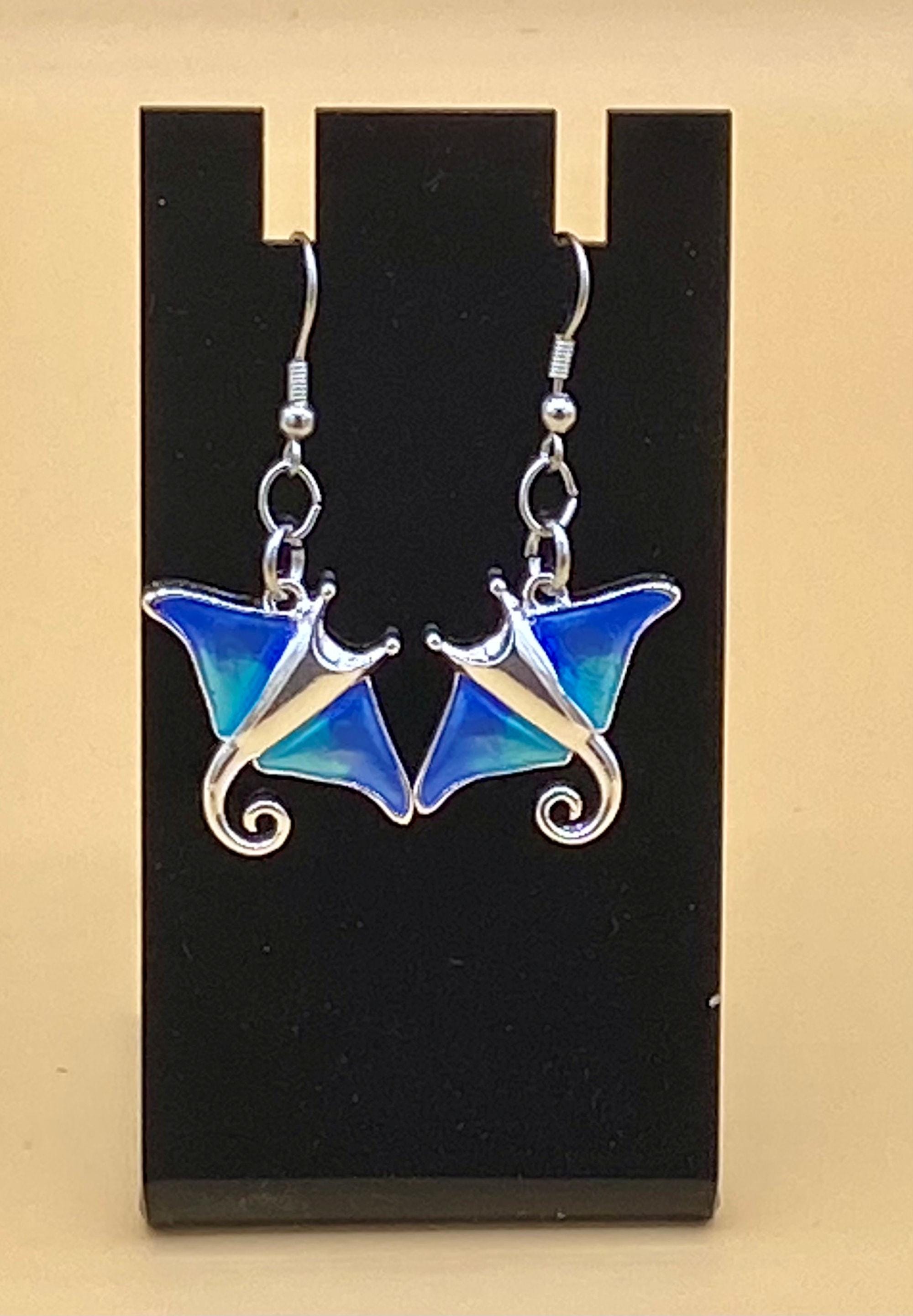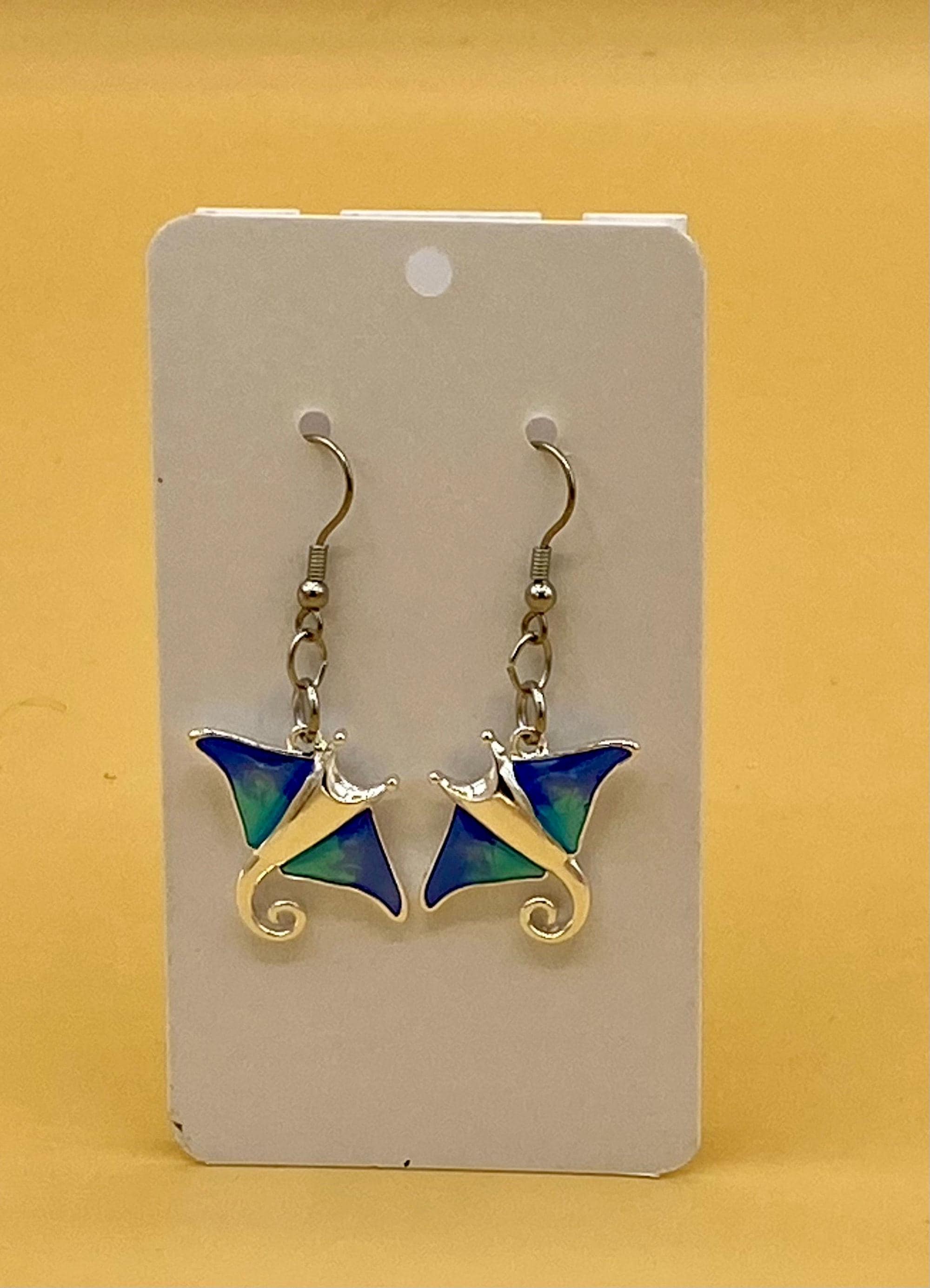 These are a perfect colorful earrings to make any occasion special. Hooks are stainless steel for those with sensitive ears. The manta ray or stingray is perfect for any beach or tropical location. These would also be perfect for a cruise. Each piece is gift boxed. Please do not hesitate to contact me with any questions, I would love to hear from you!