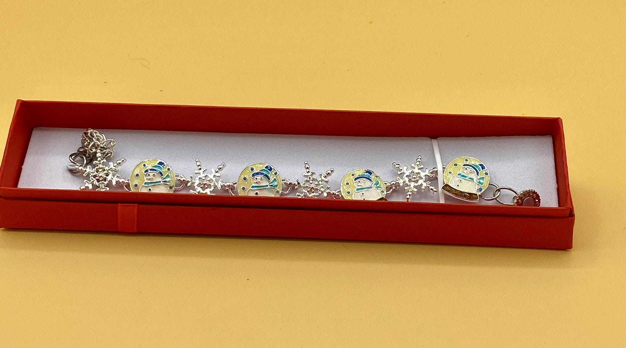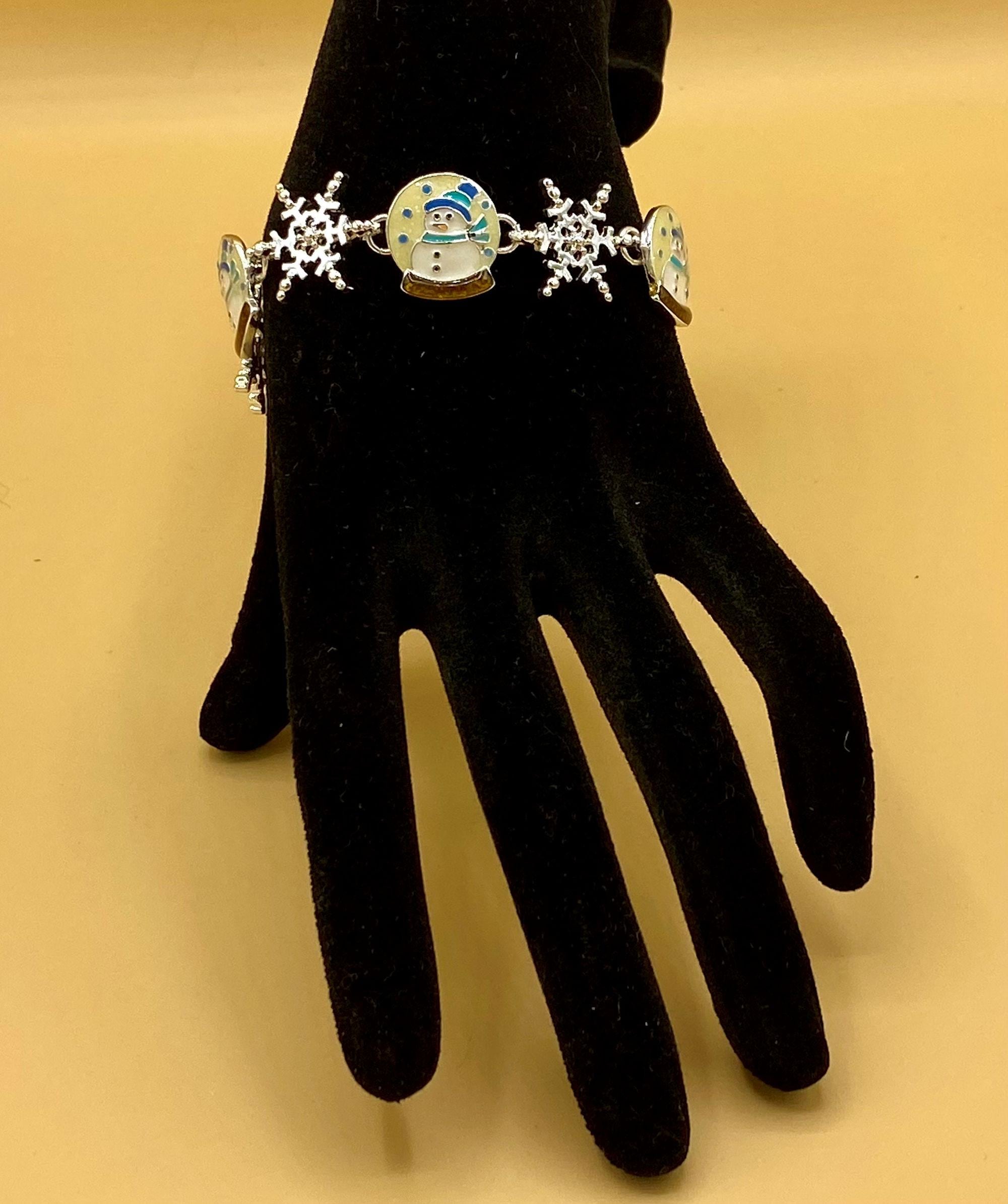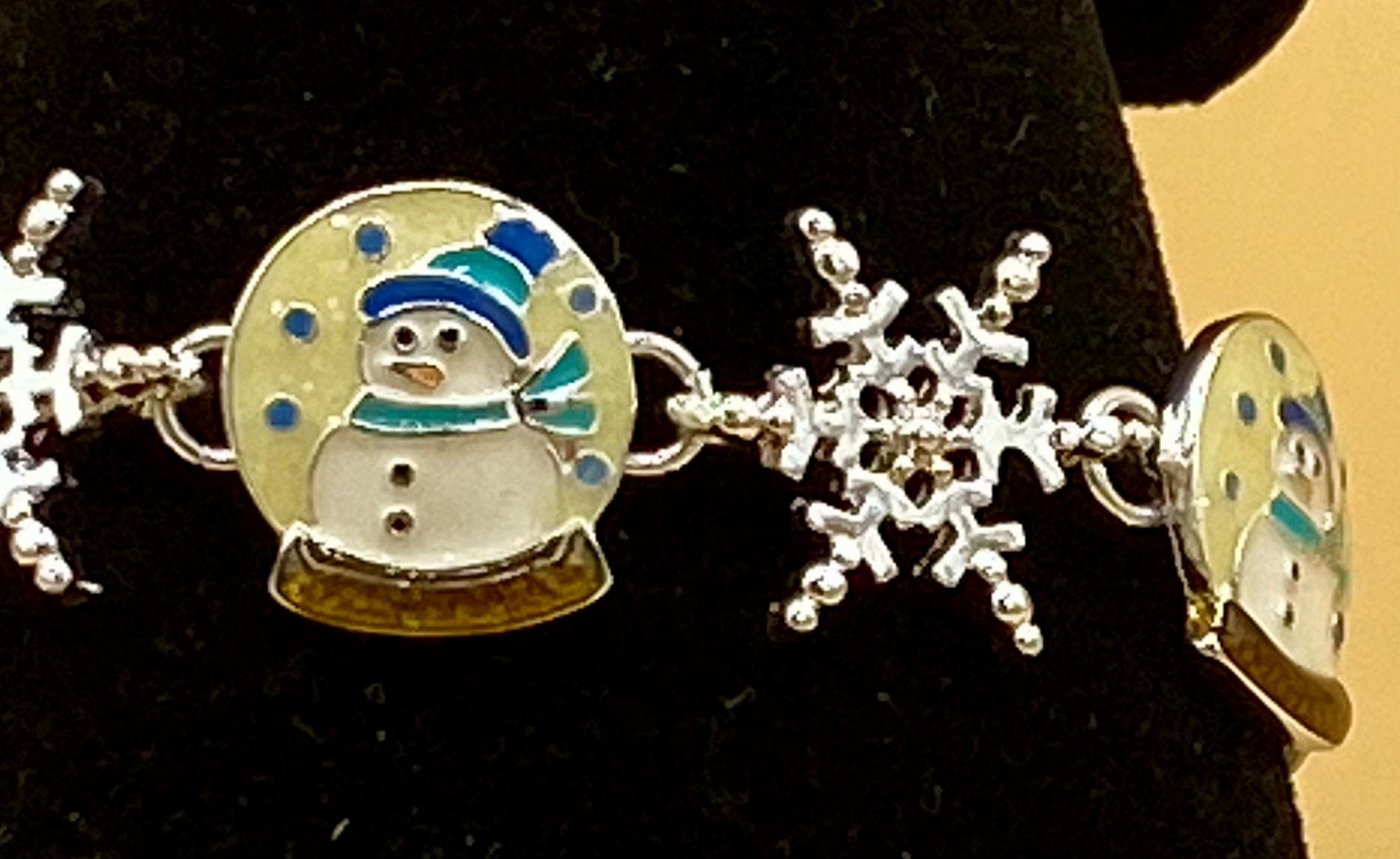 This is a perfect Christmas bracelet with an easy to use magnetic clasp. Safety chain helps to prevent loss. Colorful enamel makes this bracelet stand out. This is for the snowman or snow globe lover on your Christmas list. Each piece is gift boxed. Please do not hesitate to contact me with any questions, I would love to hear from you!