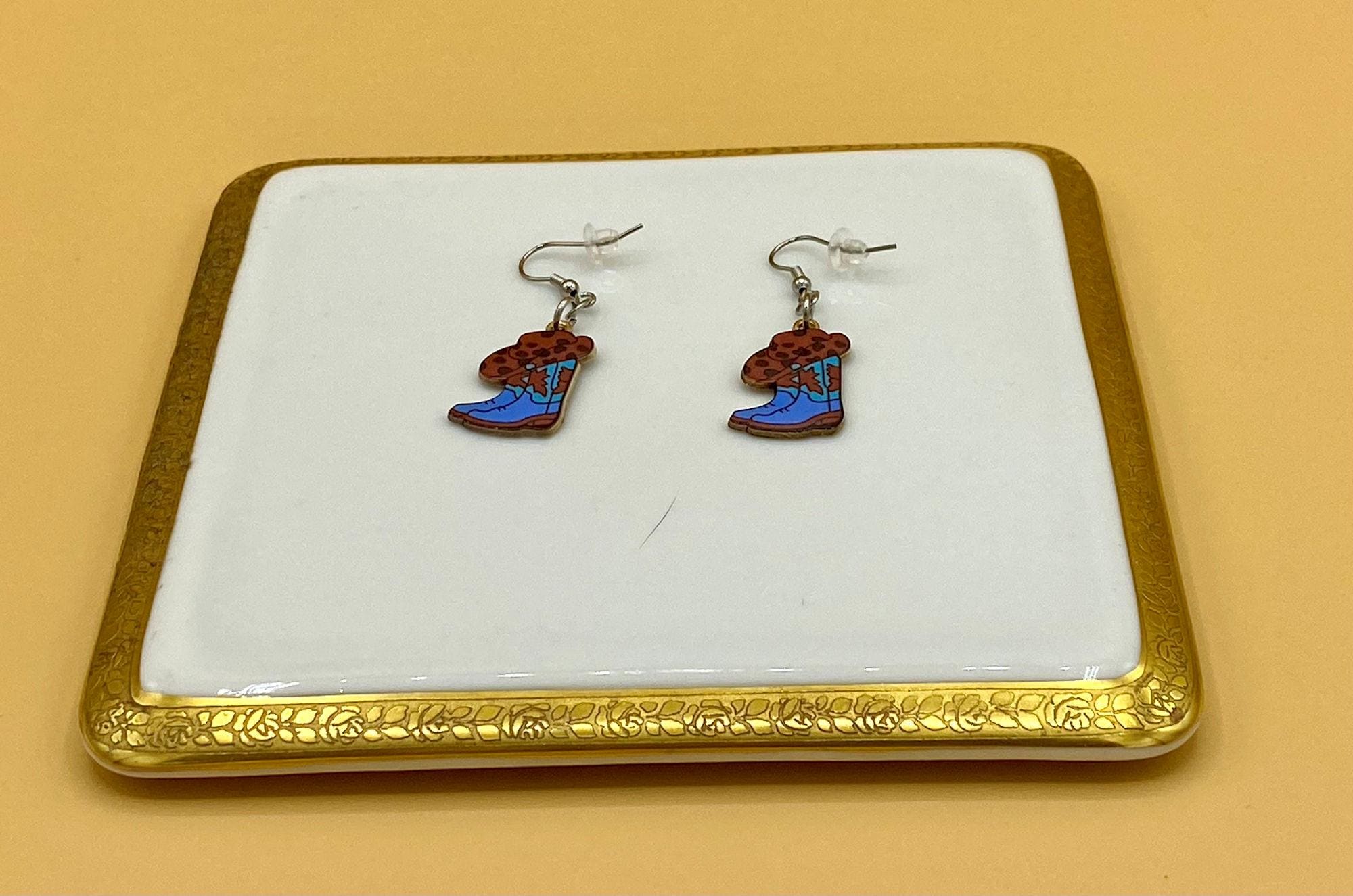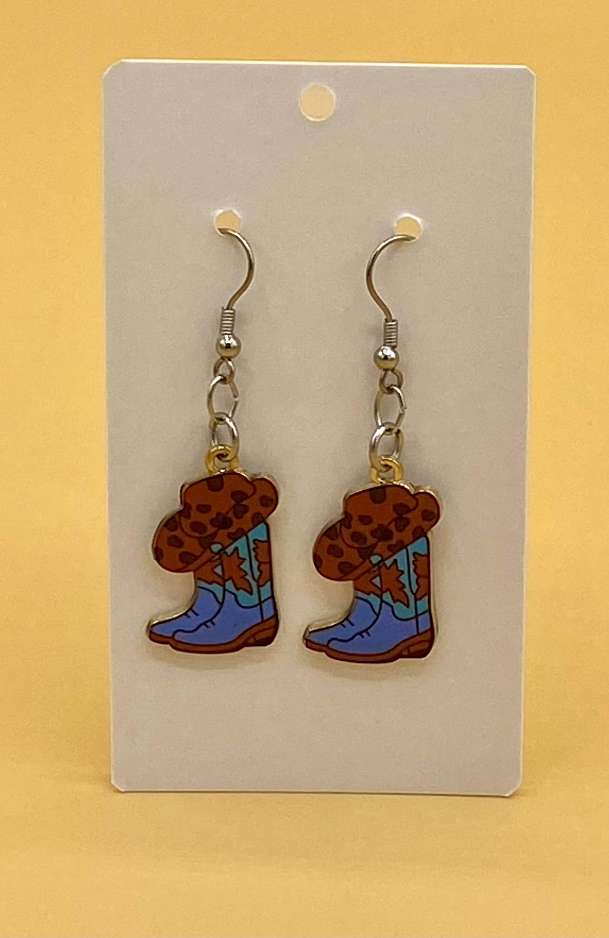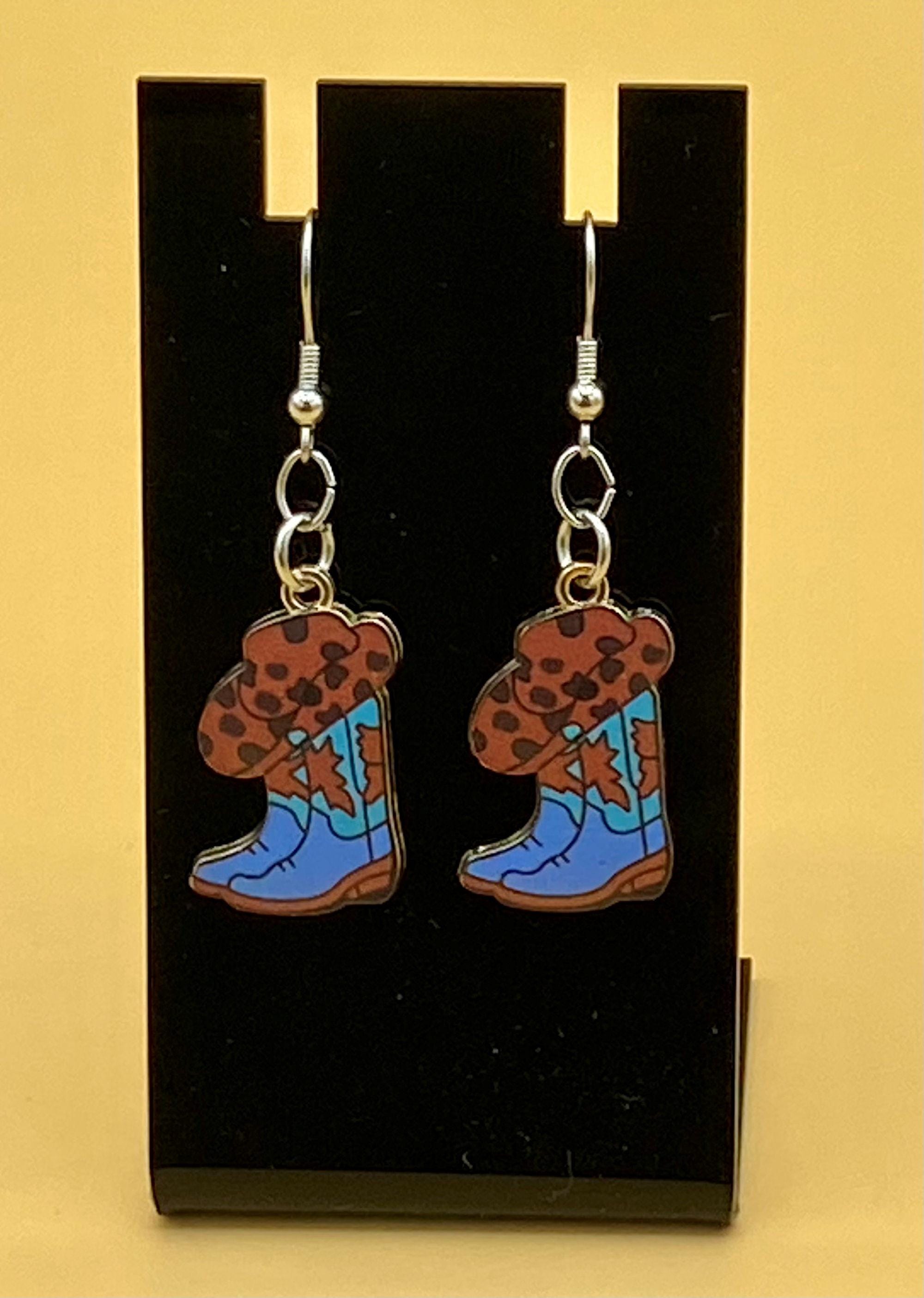 These cowgirl hat and boot combination earrings will give a western flair to any outfit. This design is available in many colorful styles to match your taste. Hooks are stainless steel for those with sensitive ears. Each piece is gift boxed. Please do not hesitate to contact me with any questions, I would love to hear from you!