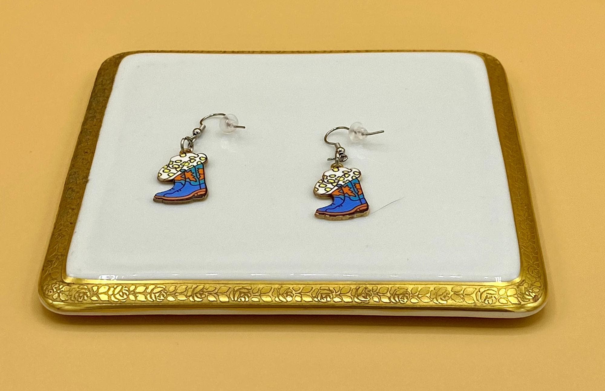 These cowgirl hat and boot combination earrings will give a western flair to any outfit. This design is available in many colorful styles to match your taste. Hooks are stainless steel for those with sensitive ears. Each piece is gift boxed. Please do not hesitate to contact me with any questions, I would love to hear from you!