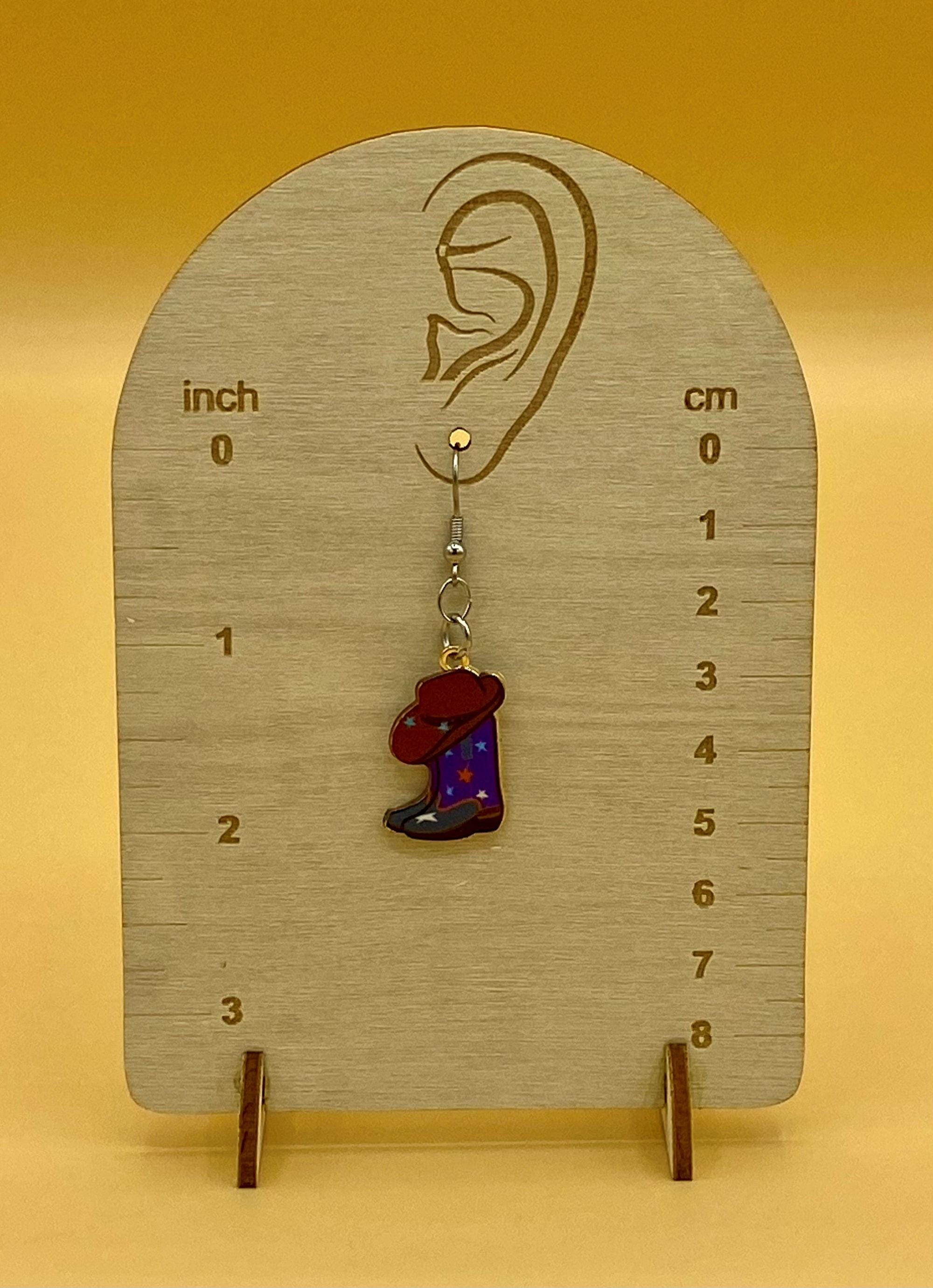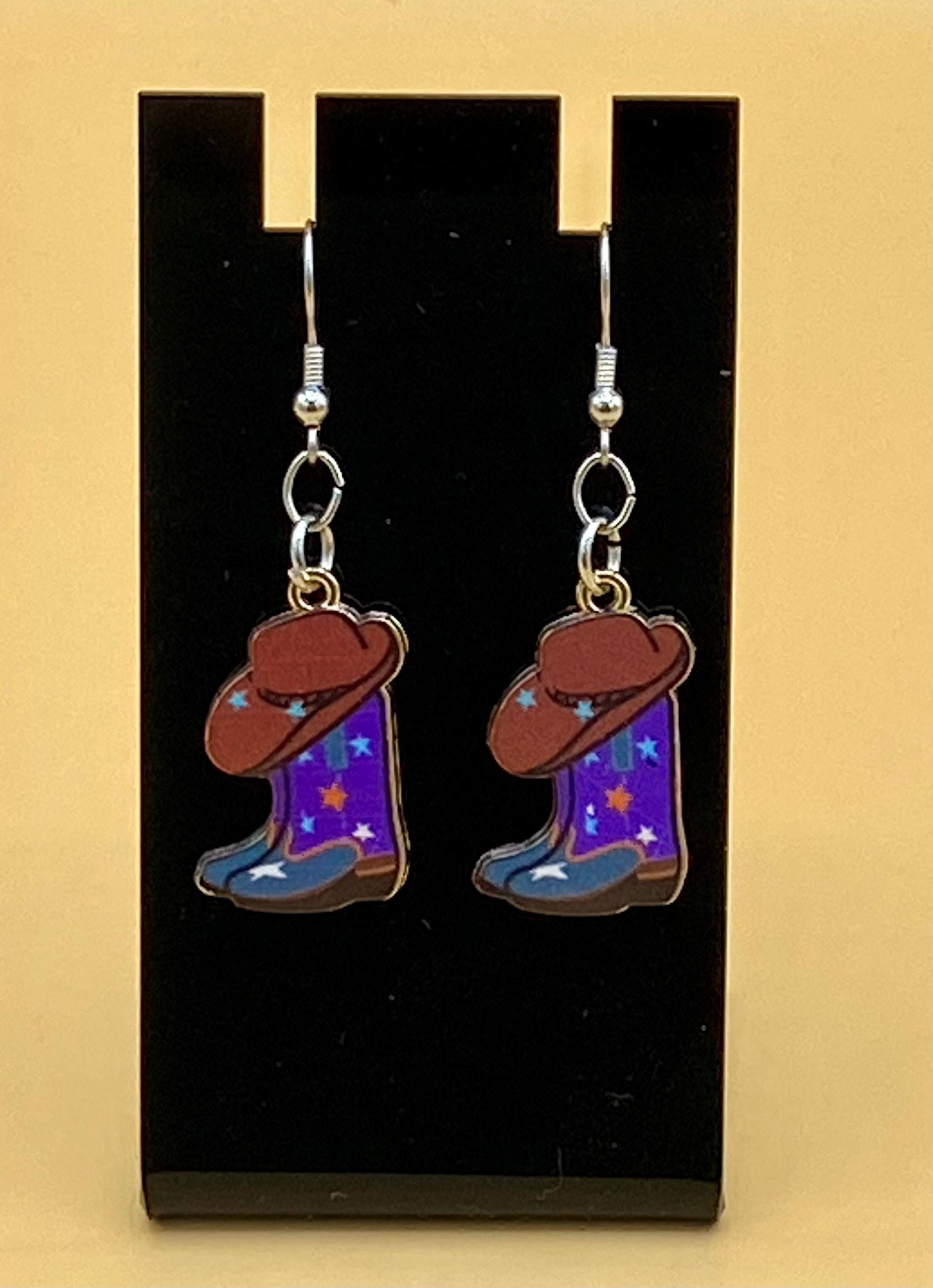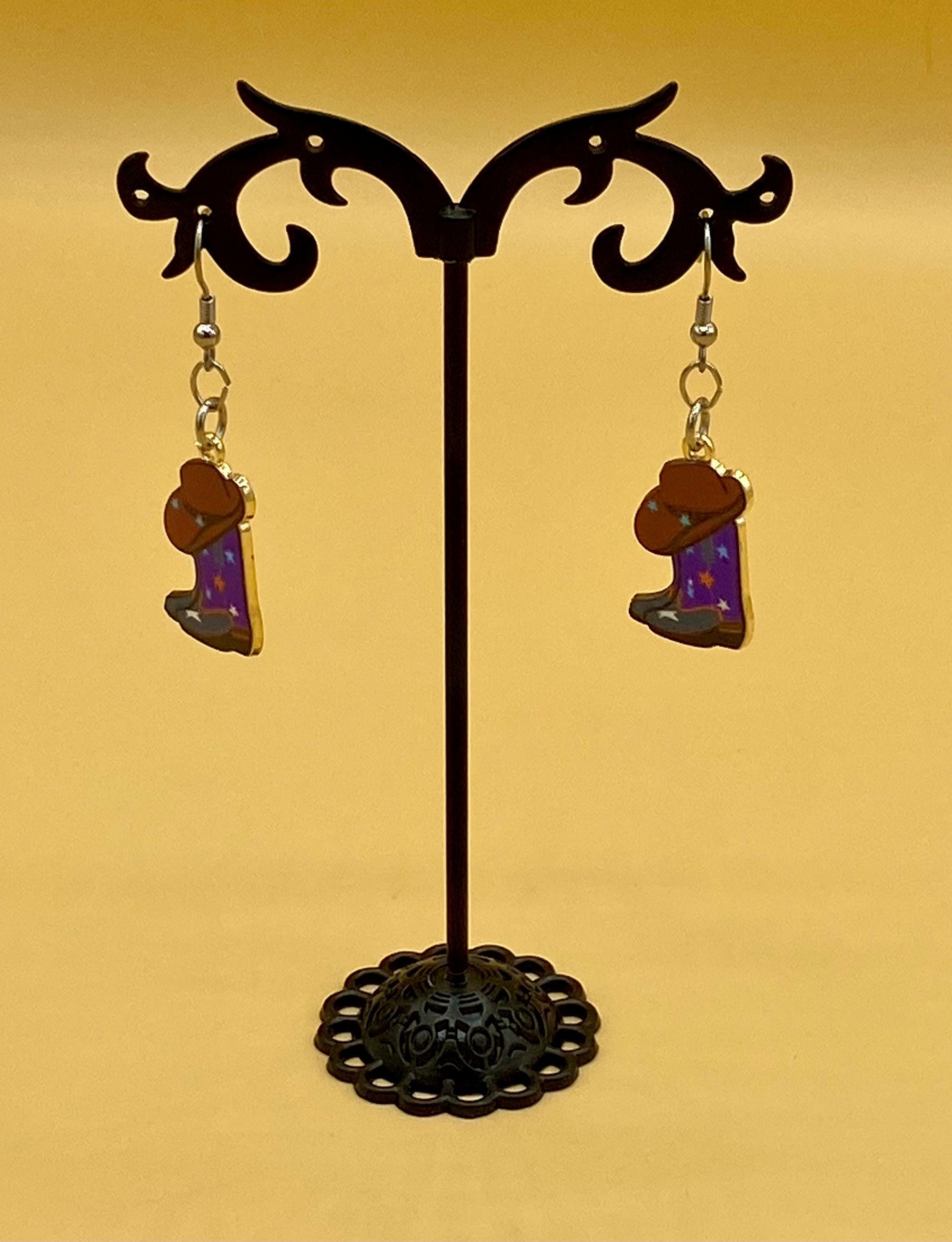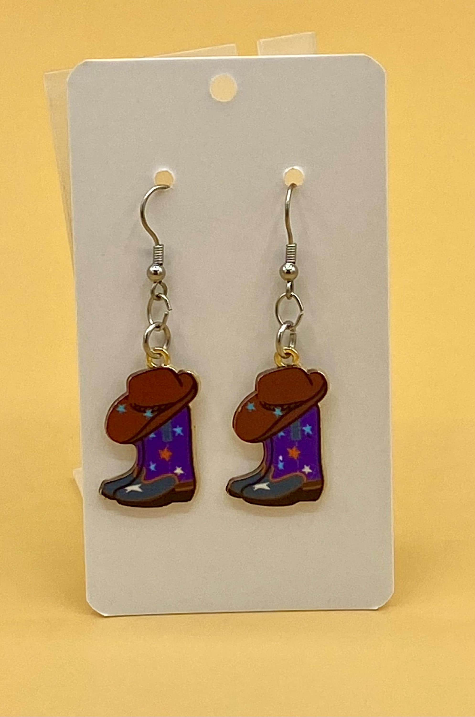 Purple Cowboy Hat & Boots Earrings Stainless Hook