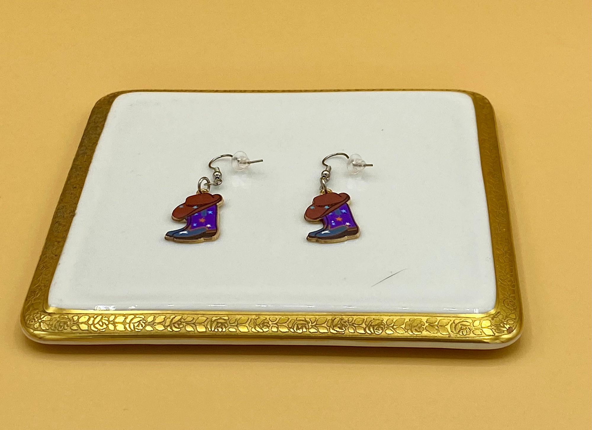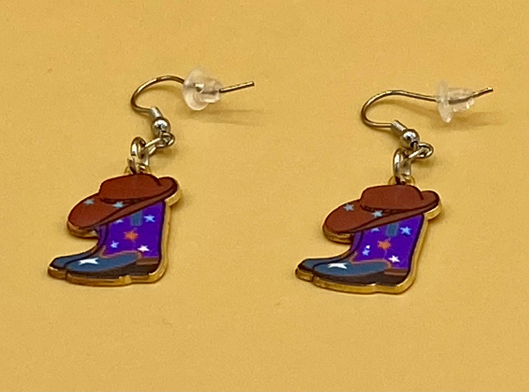 These cowgirl hat and boot combination earrings will give a western flair to any outfit. This design is available in many colorful styles to match your taste. Hooks are stainless steel for those with sensitive ears. Each piece is gift boxed. Please do not hesitate to contact me with any questions, I would love to hear from you!
