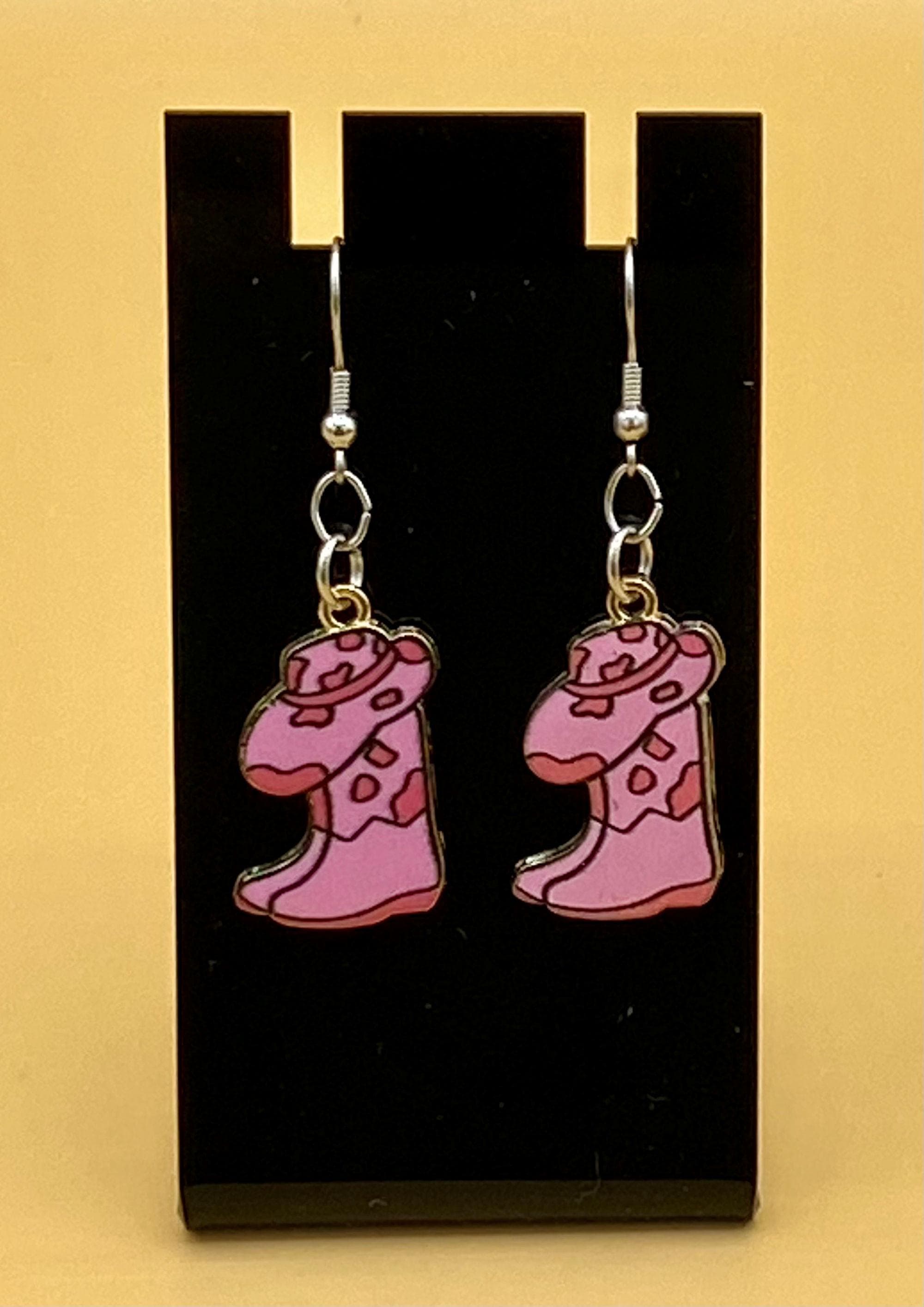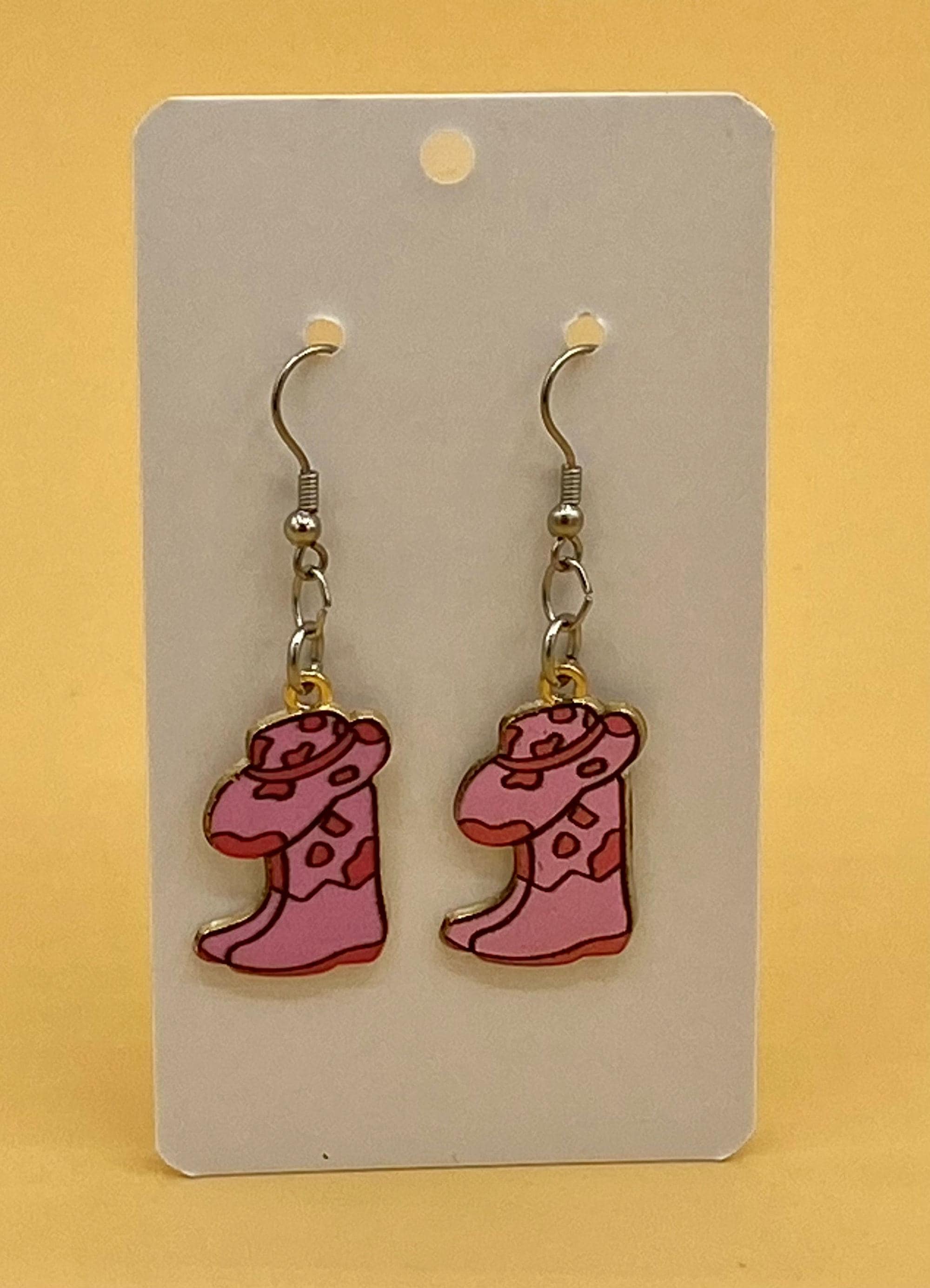 These cowgirl hat and boot combination earrings will give a western flair to any outfit. This design is available in many colorful styles to match your taste. Hooks are stainless steel for those with sensitive ears. Each piece is gift boxed. Please do not hesitate to contact me with any questions, I would love to hear from you!