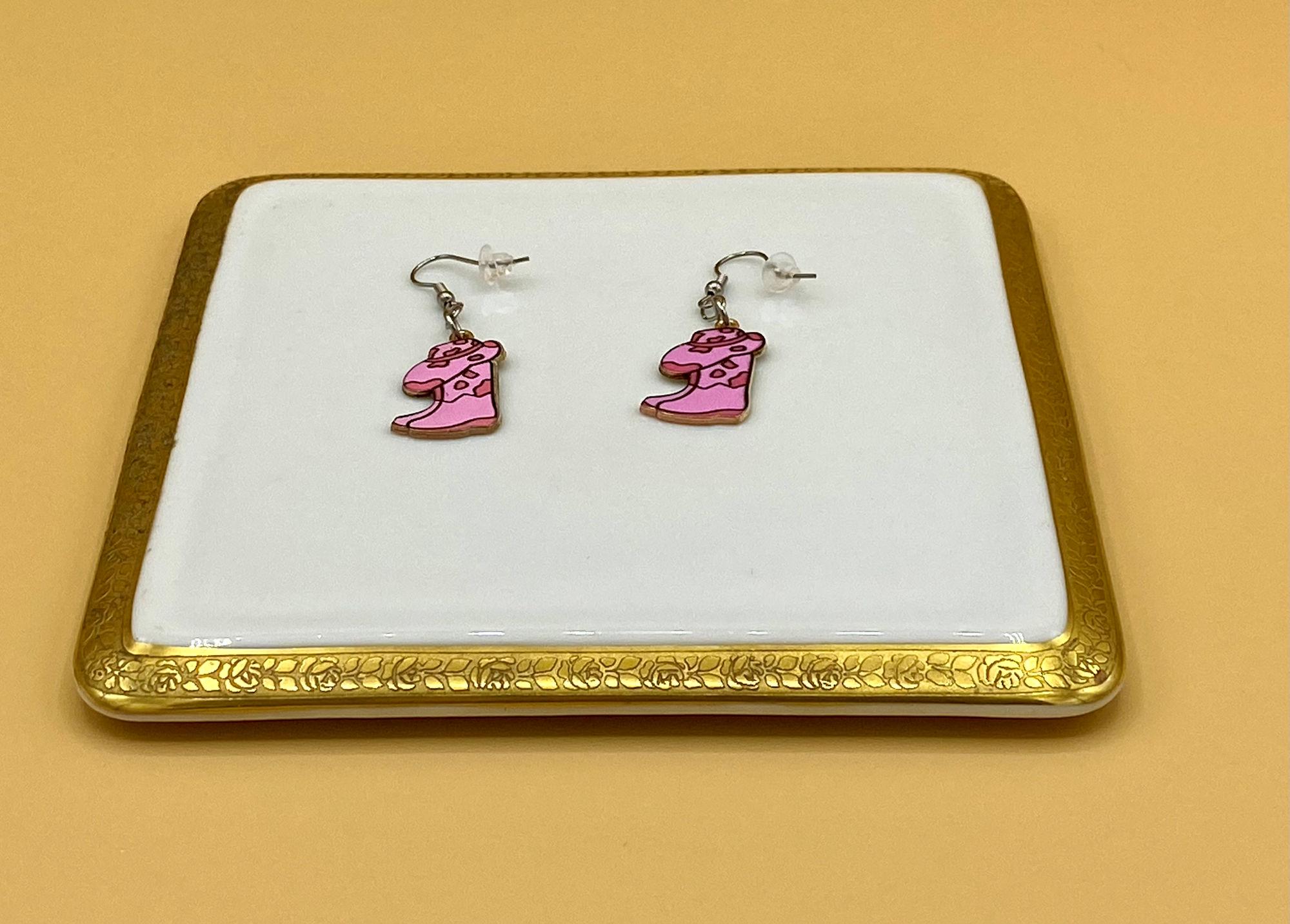 Pink Boots & Cowboy Hat Earrings Stainless Hook