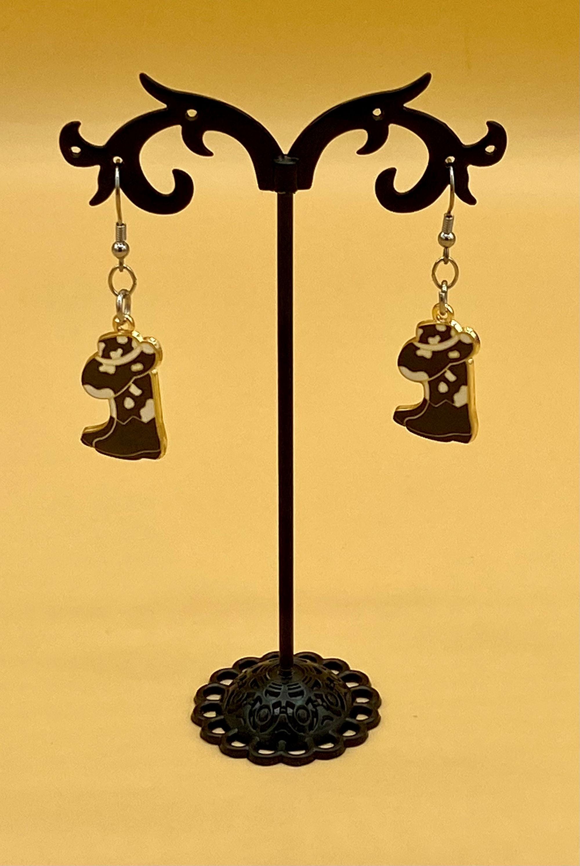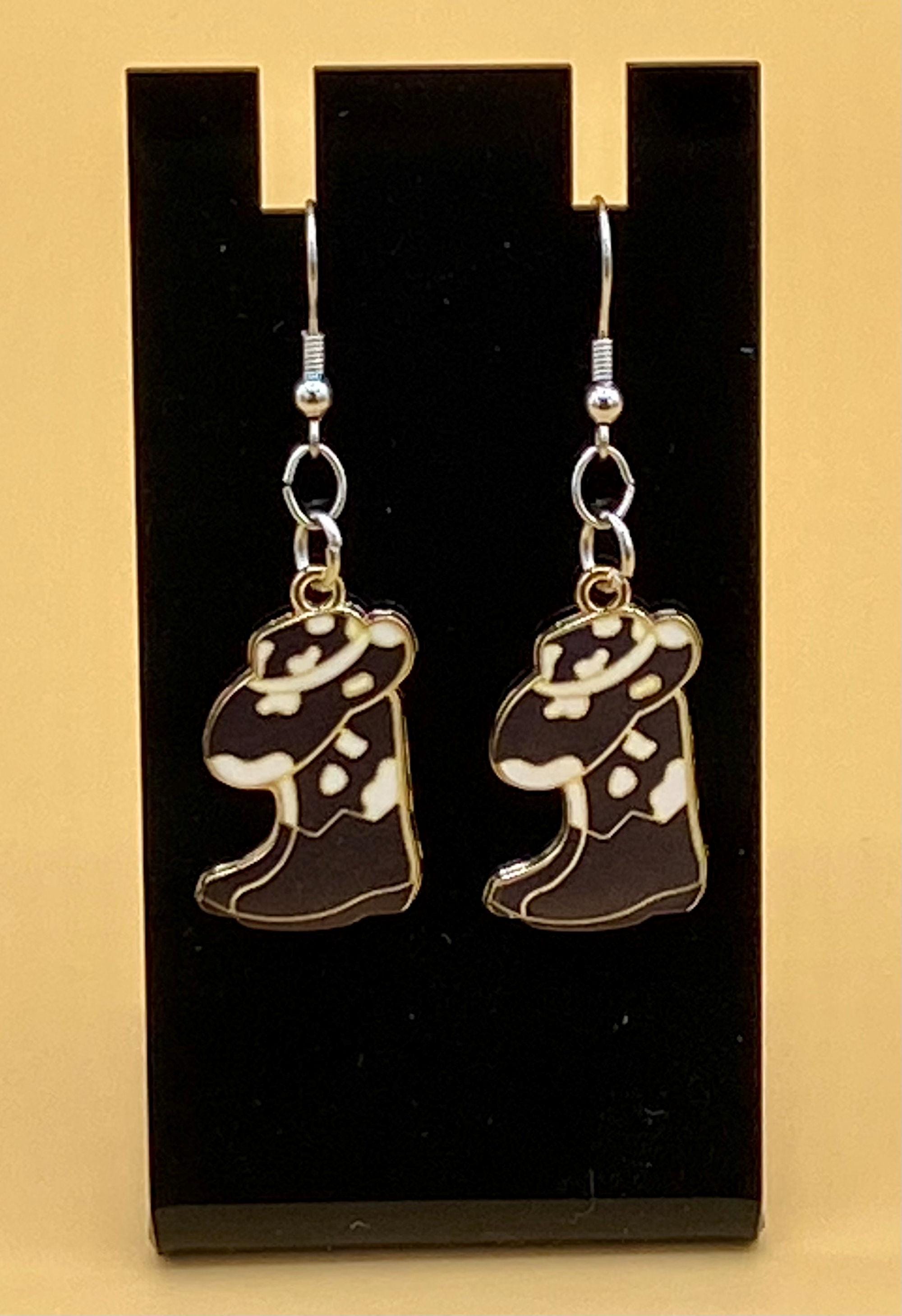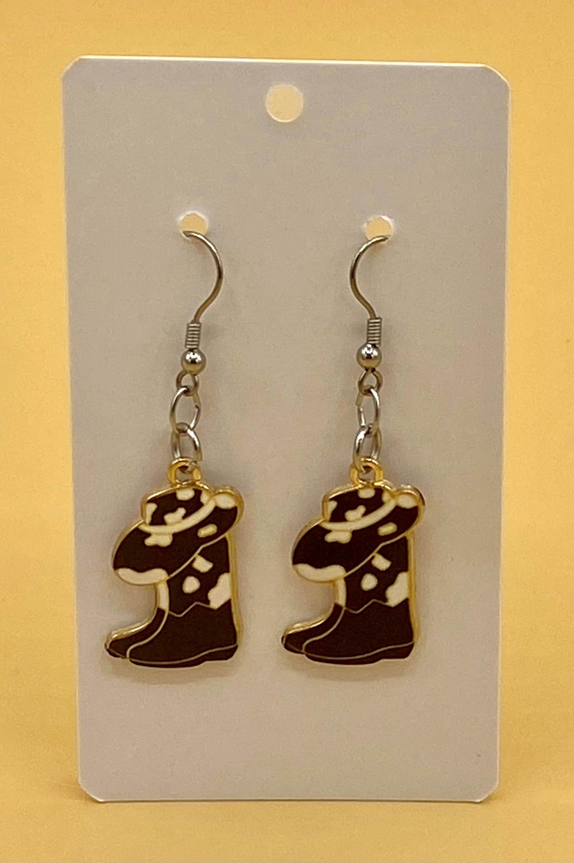 These cowgirl hat and boot combination earrings will give a western flair to any outfit. This design is available in many colorful styles to match your taste. Hooks are stainless steel for those with sensitive ears. Each piece is gift boxed. Please do not hesitate to contact me with any questions, I would love to hear from you!