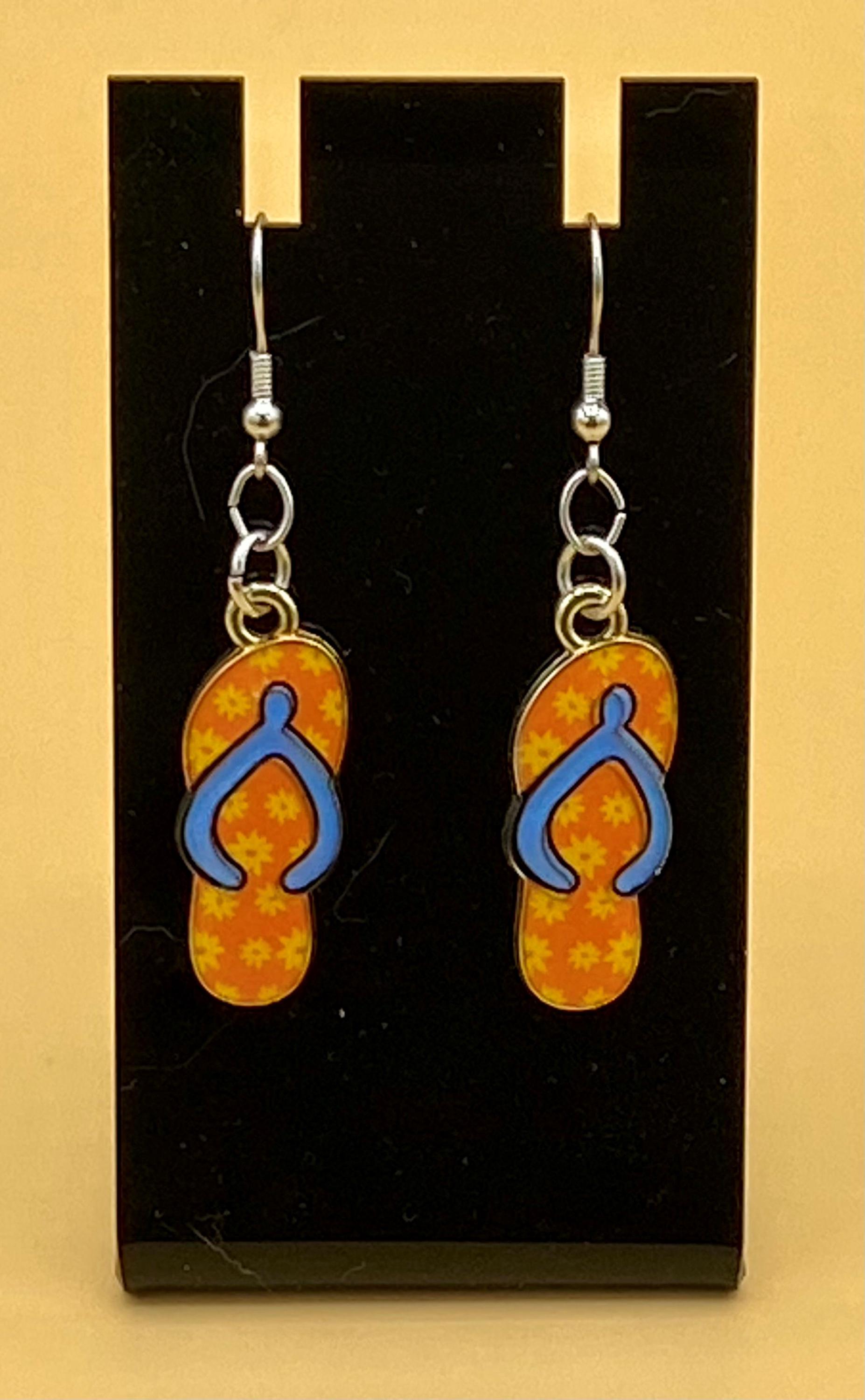 Orange Flip Flop Earrings Stainless Hook