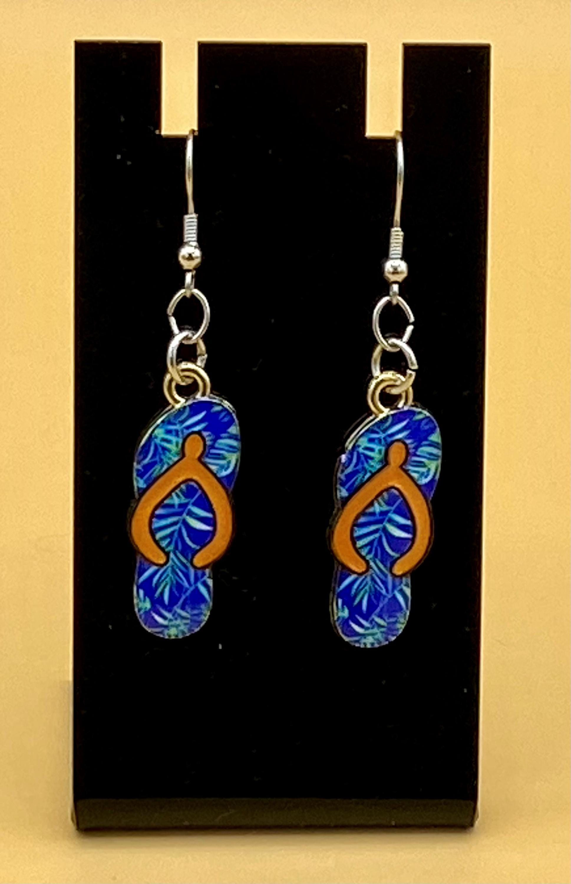 Blue & Orange Flip Flop Earrings Stainless Hook