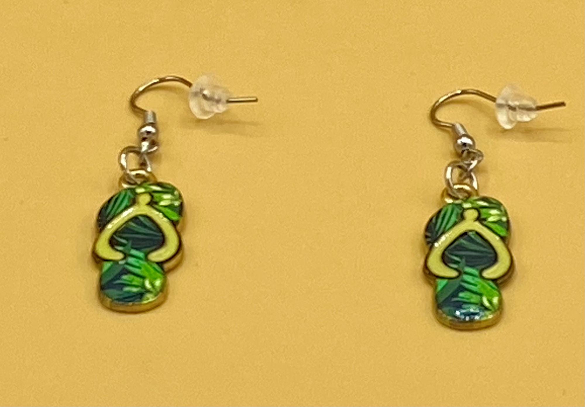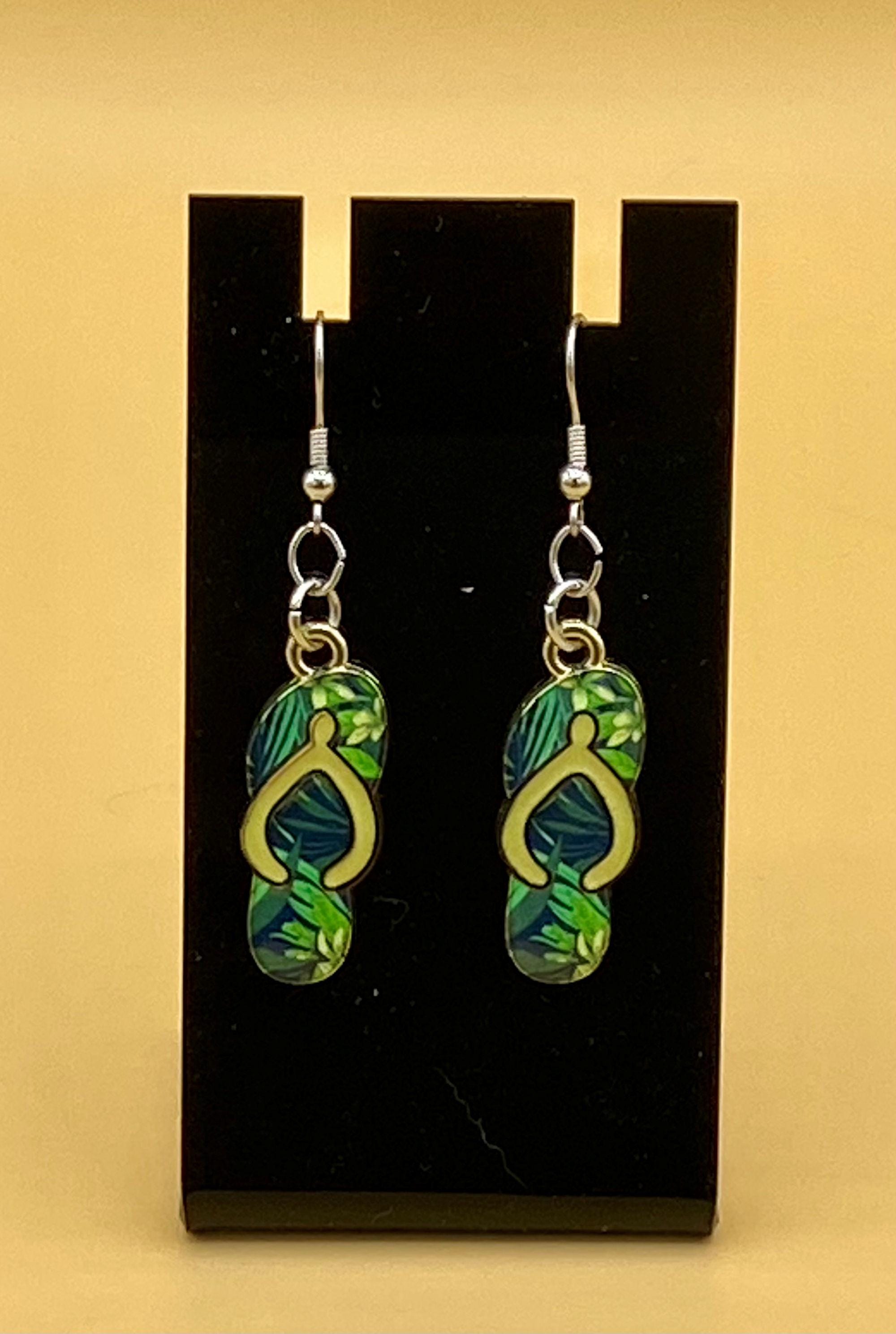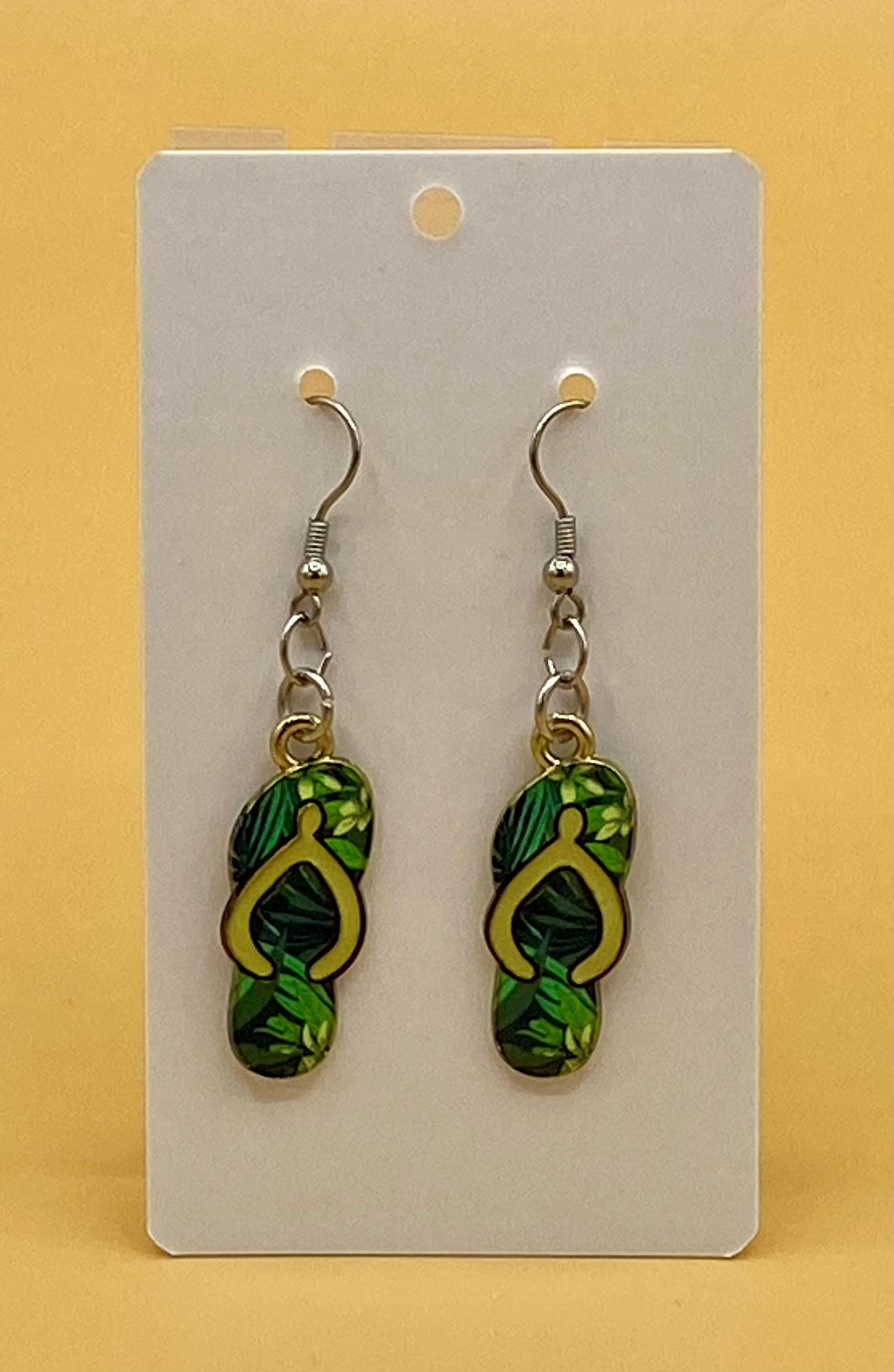 Green Flip Flop Earrings Stainless Hook