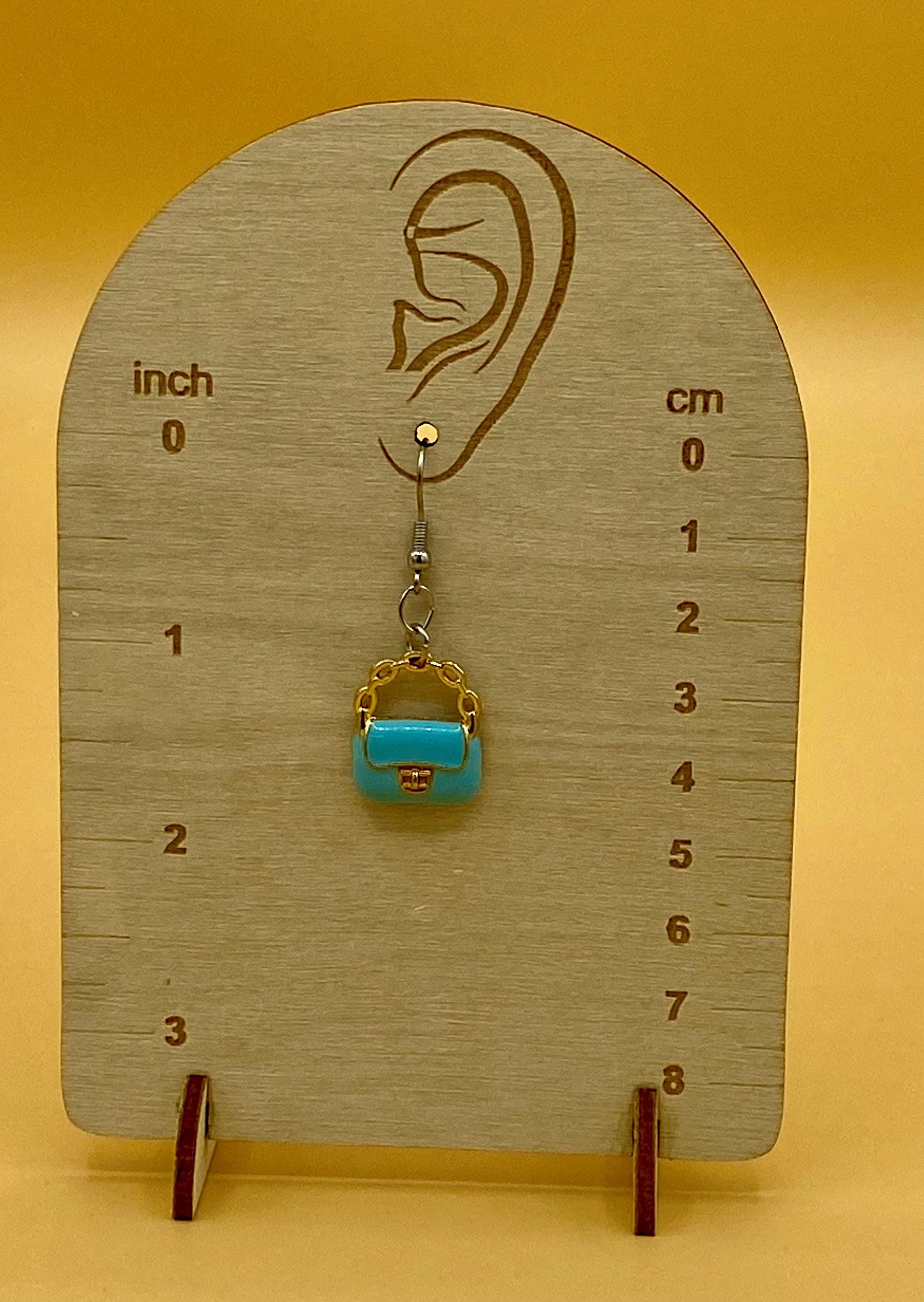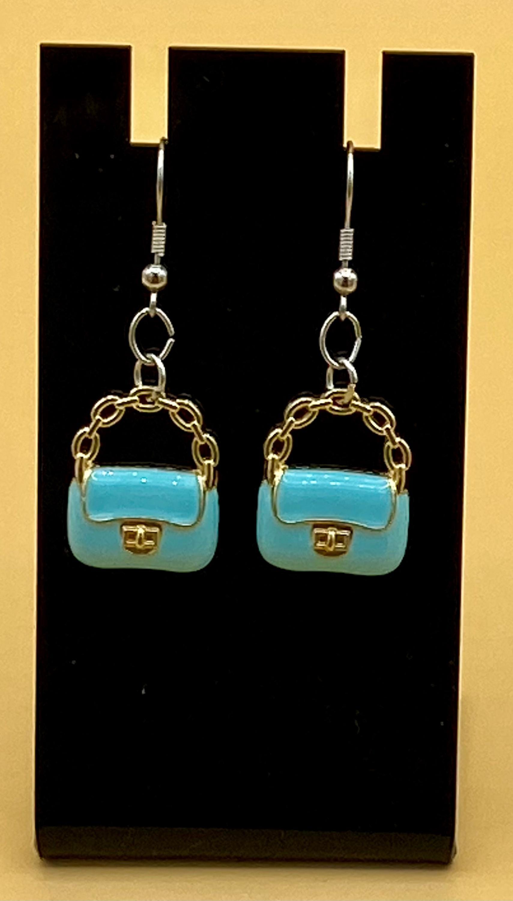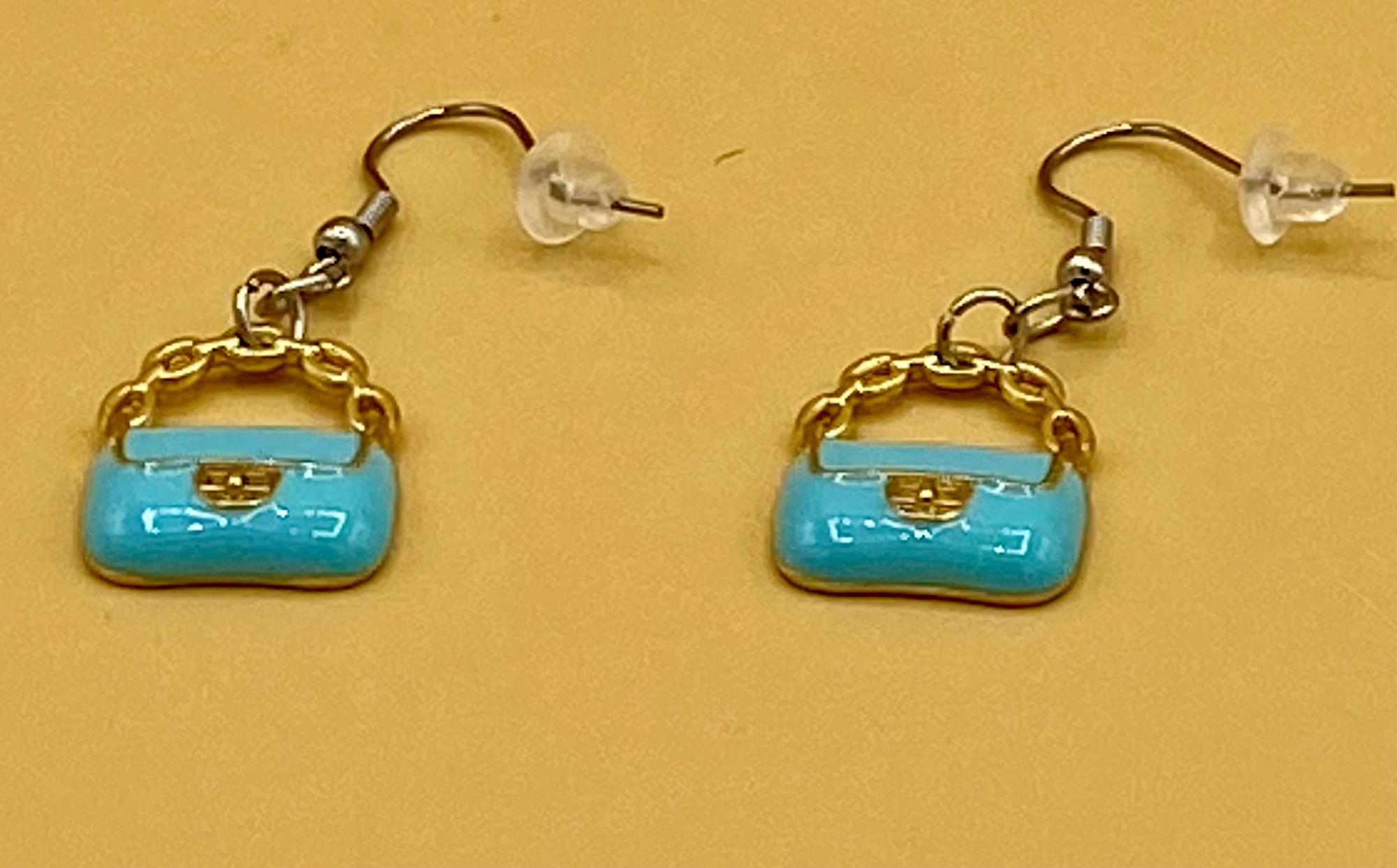 Blue Clutch Purse Earrings Stainless Hook