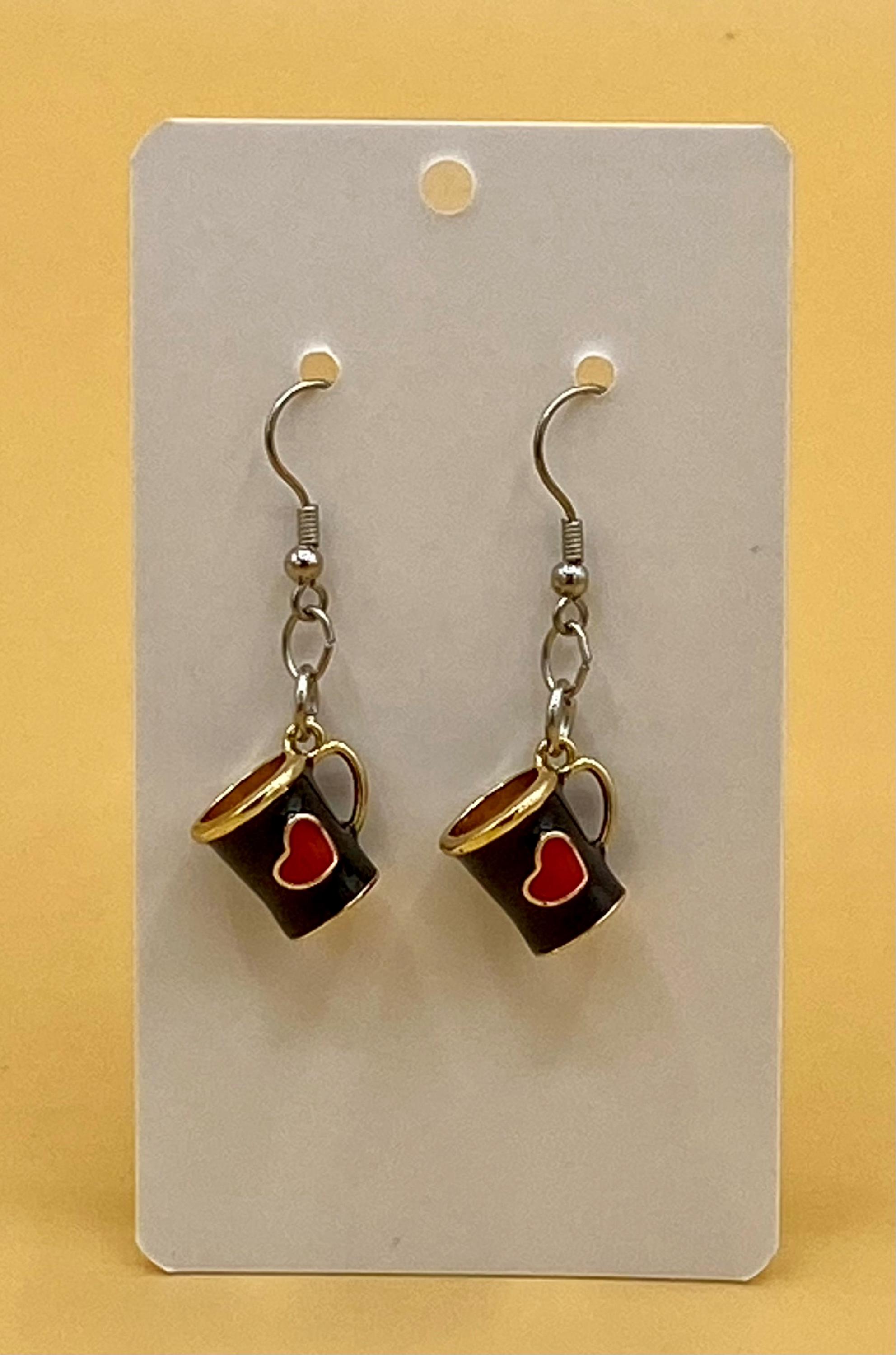 These are fun whimsical earrings designed with coffee and tea lovers in mind! Mugs are 3D and have hearts on them. Hooks are stainless steel for those with sensitive ears. These are great for everyday and will match so many outfits. Each piece is gift boxed. Please do not hesitate to contact me with any questions, I would love to hear from you!