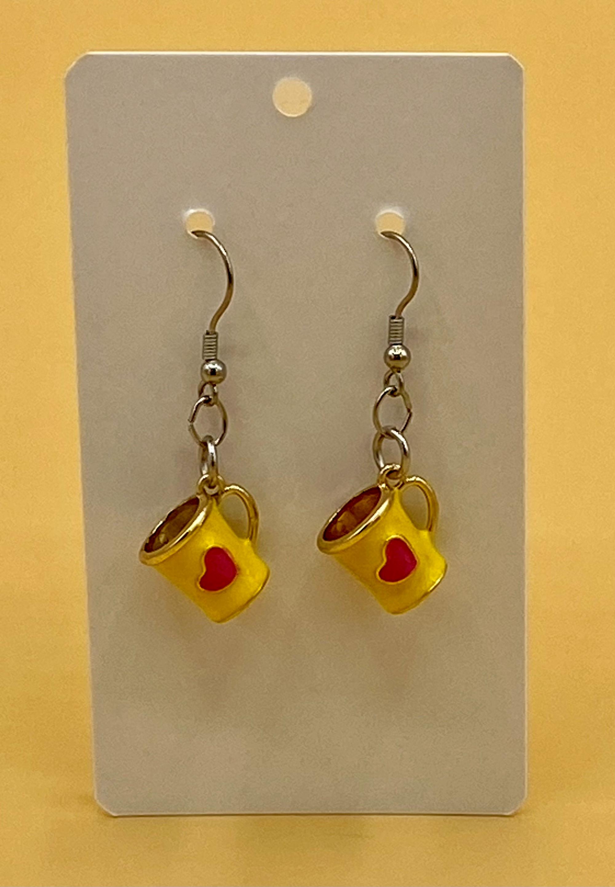 Yellow Coffee Mug 3D Earrings Stainless Hook
