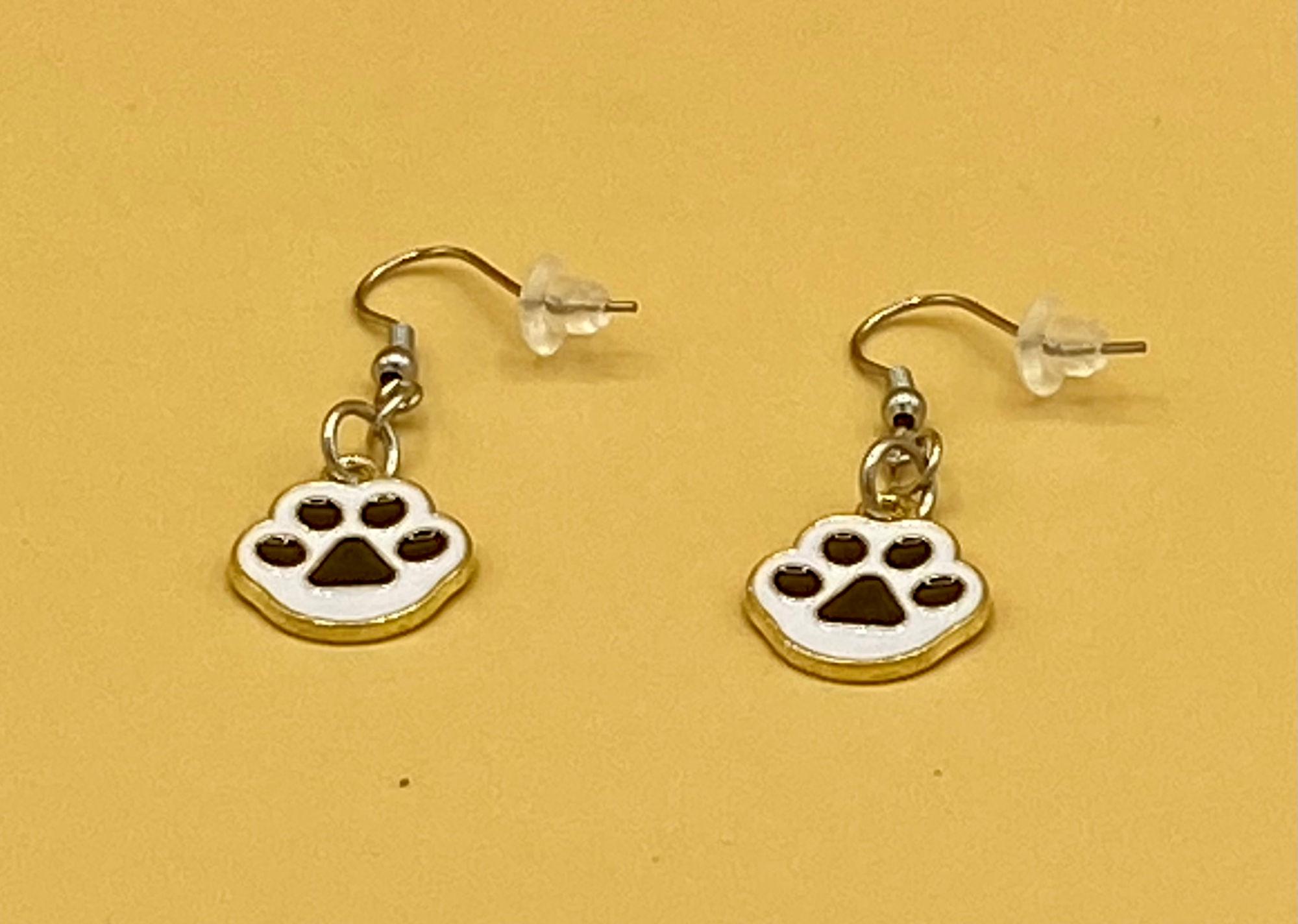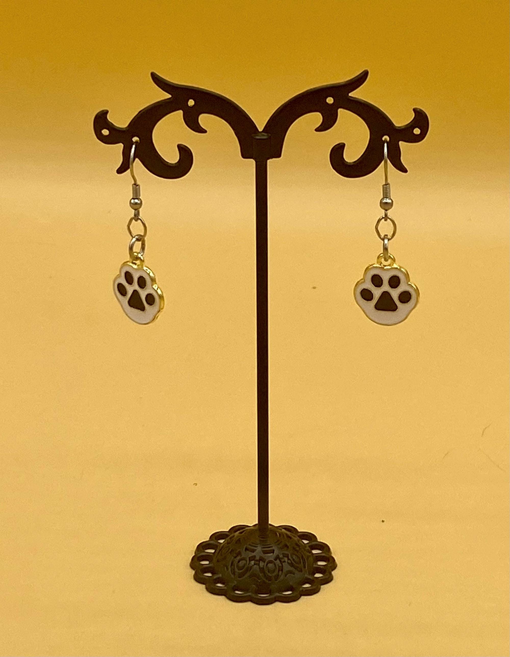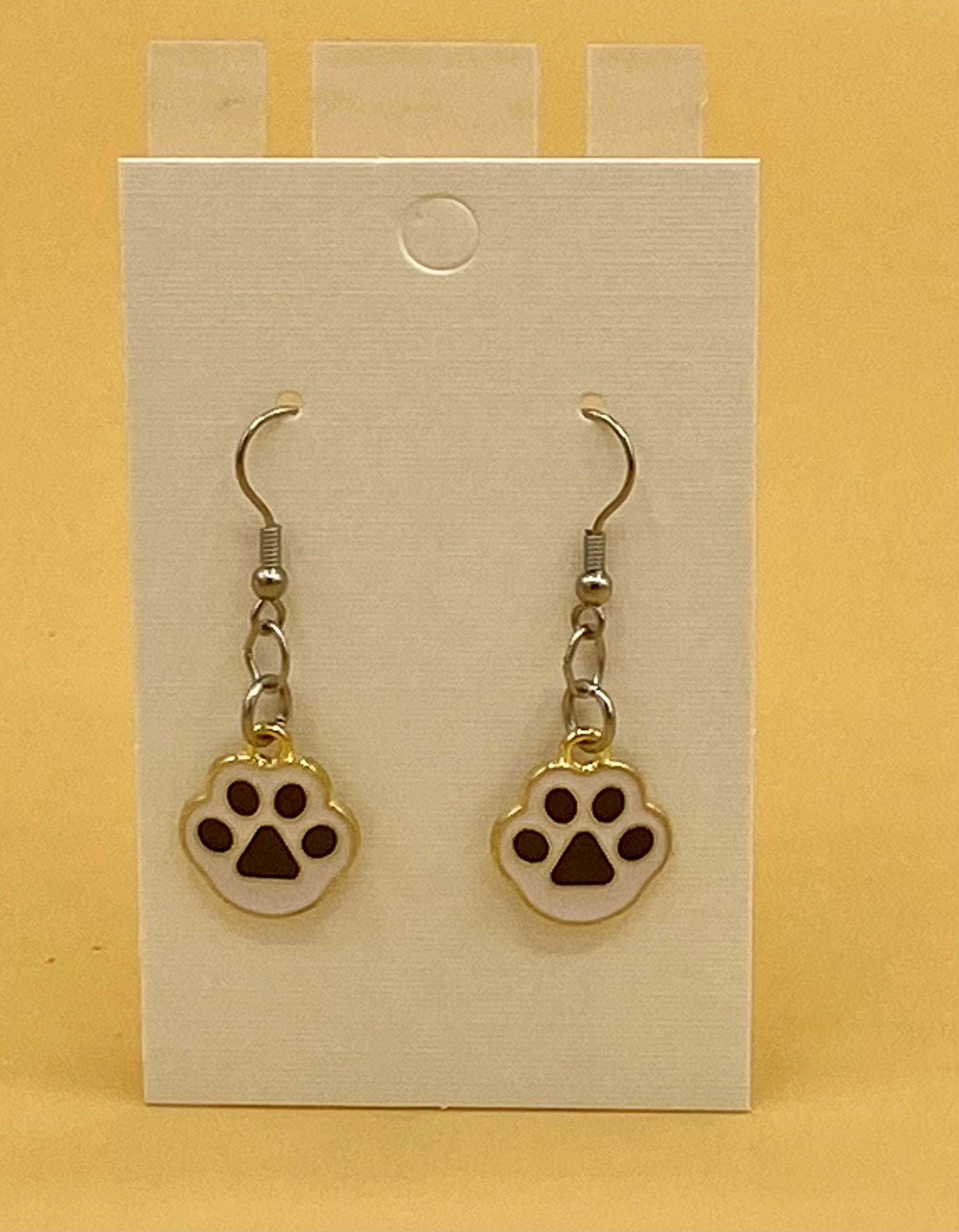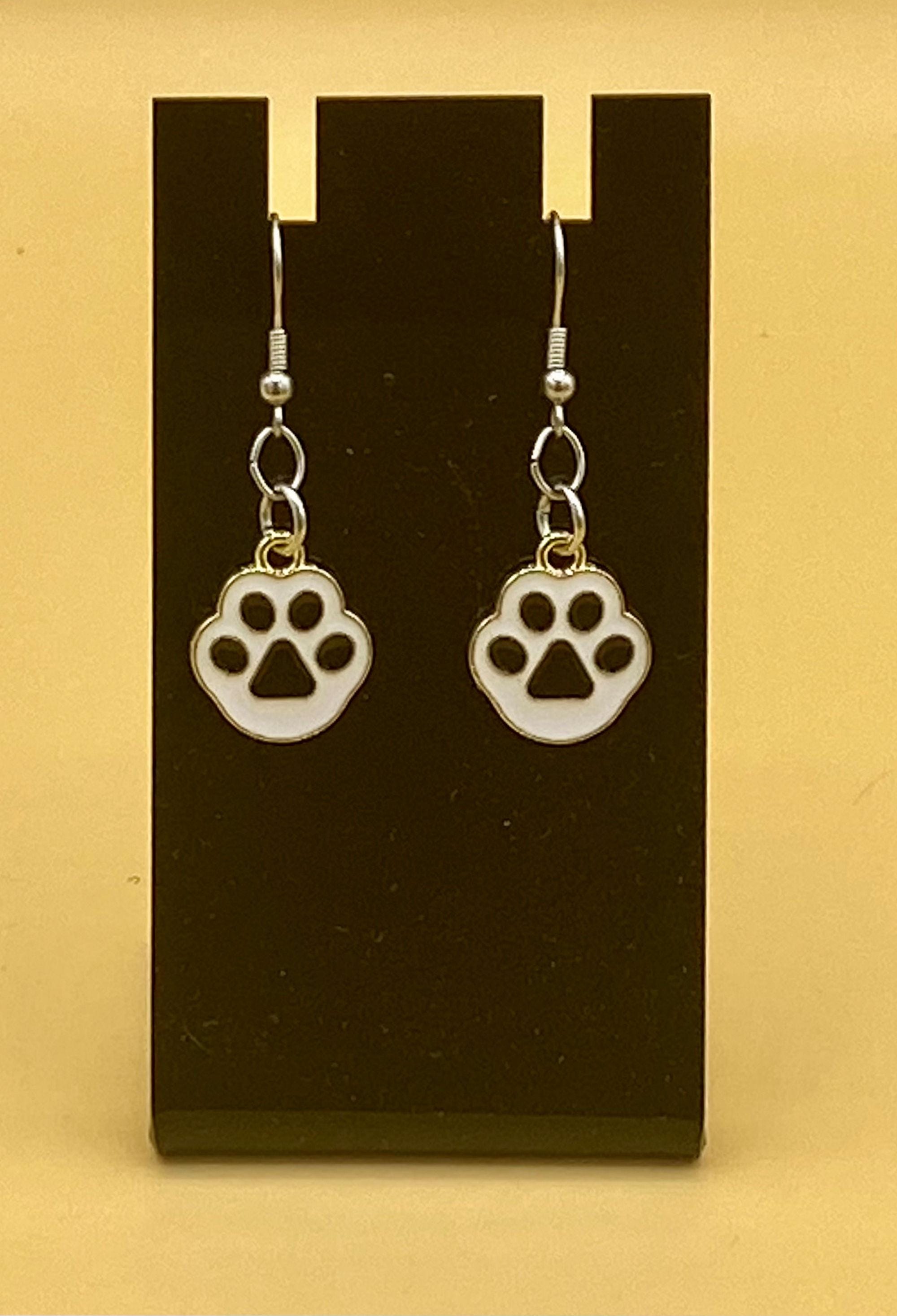 Black Cat Dog Paw Earrings Stainless Hook